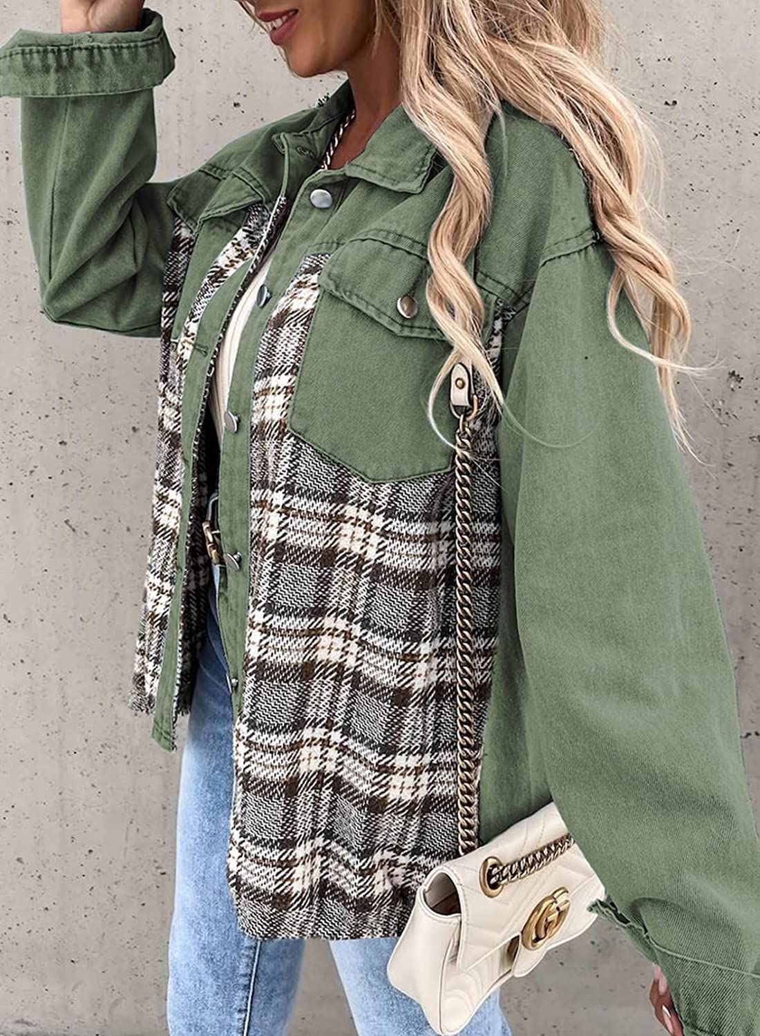 Astylish Women Jean Jacket Long Sleeve Button Down Plaid Oversized Denim Shacket Jackets