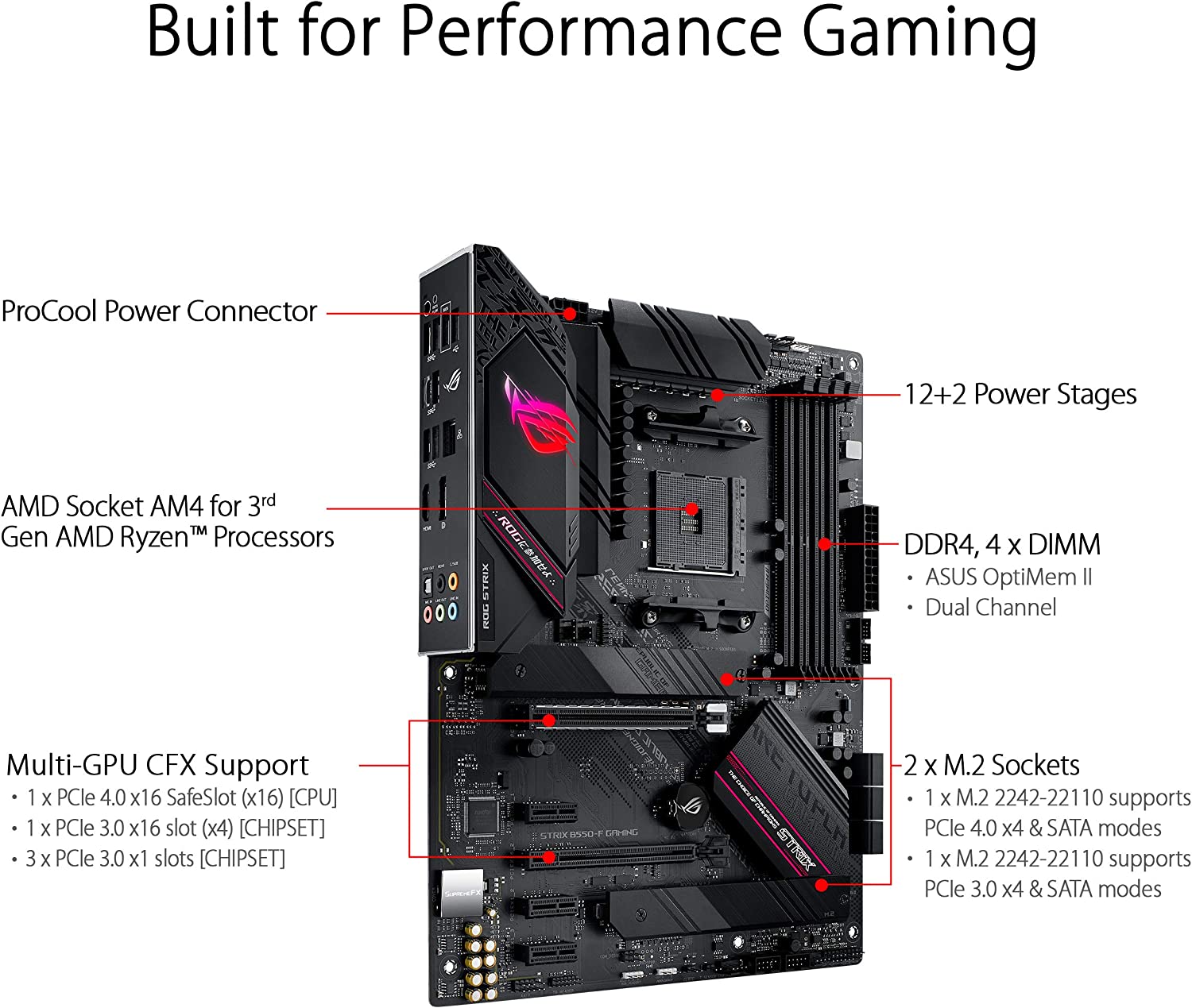 Experience next-level performance and connectivity with the ASUS ROG Strix B550-F Gaming, featuring PCIe 4. 0 and 2. 5Gb Ethernet. Robust power and effective cooling make the ROG Strix B550-F Gaming the perfect partner for 3rd Gen AMD Ryzen CPUs. Futuristic aesthetics, intuitive software, and a reliable Stack Cool 3+ design put your build in the winner’s circle. Free 3-months Adobe Creative Cloud Subscription: Receive complimentary access with the purchase of this product (offer valid from 9/15/2021 to 9/15/2022) visit /public/picture123/20230409/xmvvponjoxf65864 to claim.