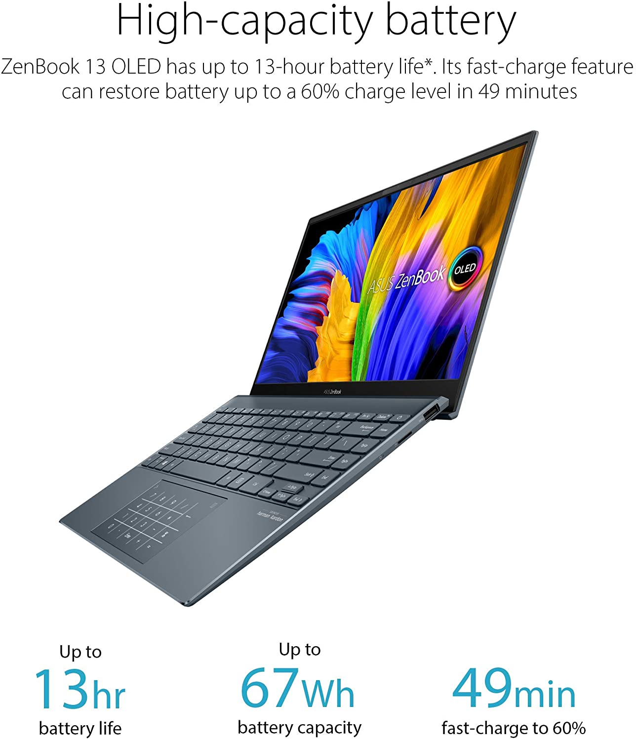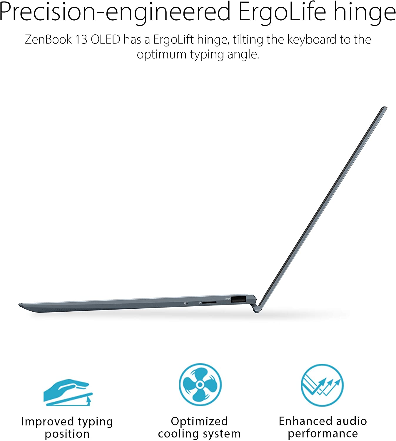 The beautiful new ZenBook 13 OLED brings you visuals like you’ve never experienced before. It’s also more portable than ever, weighing only 2.51lb with a 13.9 mm-thin profile. Even though It’s thinner, lighter, and incredibly compact, it includes HDMI, Thunderbolt™ 4 USB-C®, USB Type-A and a microSD card reader for unrivaled versatility. Built to deliver powerful performance and true-to-life visuals, ZenBook 13 OLED is your perfect choice for an effortless on-the-go lifestyle.