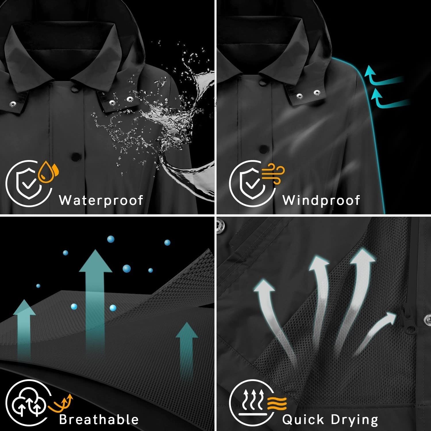 Avoogue Rain Coats for Women Rain Jacket Waterproof Lightweight Windbreaker Jacket Outdoor Hooded Long Raincoat