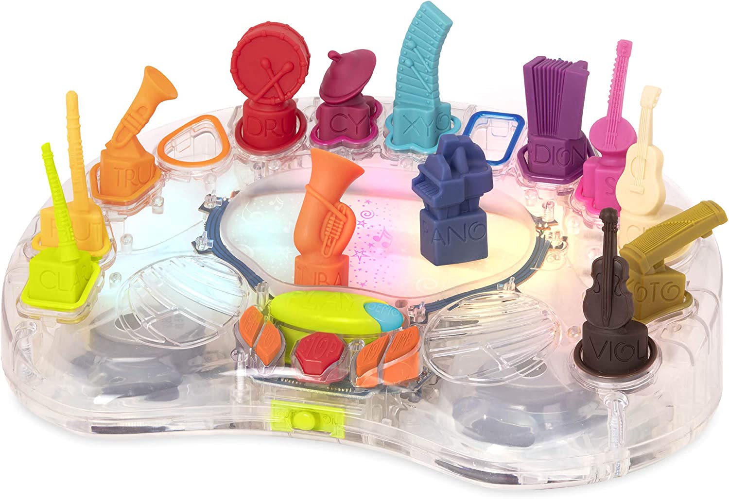 Give the gift of beautiful music with the B. Symphony toy orchestra from b toys! 13 instruments. 15 songs. The musical possibilities are endless. Choose your song and up to 6 instruments. Place them in the orchestra pit and hear them play all together. Change up the instruments (while the song plays) for a musical transformation. The perfect birthday or Christmas present for 3-6-year-old girl or boy. One of the best musical toys for toddlers and kids a little older, this toddler music set is sure to charm The whole family! Share a unique moment with your child as he discovers the beautiful sound The sitar can make or bring it to the next family reunion and see how this toy orchestra will please all generations. Beautiful, rich, professionally recorded sounds; it feels like conducting a real Symphony! Control the volume and the Tempo too! Early introduction to music concepts can kick-start learning and will offer lifelong benefits. Kids respond best to the music experience when they actively experience It, like with this musical instrument set for toddlers. This Symphony orchestra comes with 13 toy musical instruments for kids, a music booklet, detailed instructions of all the functions and 6 x AA batteries. With endless musical combinations, This one will give your home musical Vibes for sure. Music maestro!
