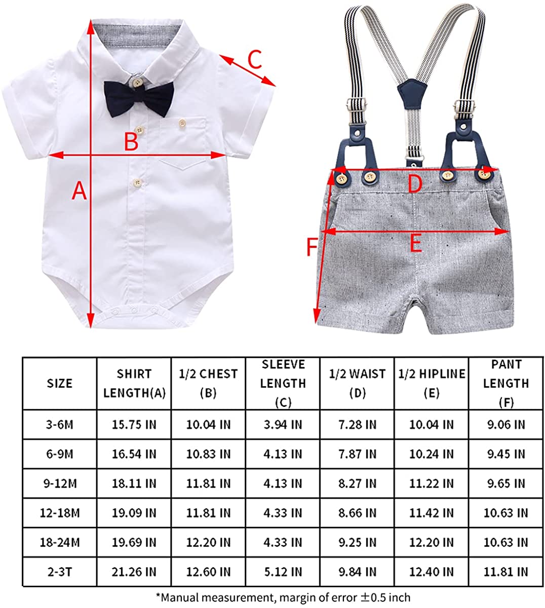Baby Boys Gentleman Outfits Suits, Infant Short Sleeve Shirt+Bib Pants+Bow Tie Clothes Set