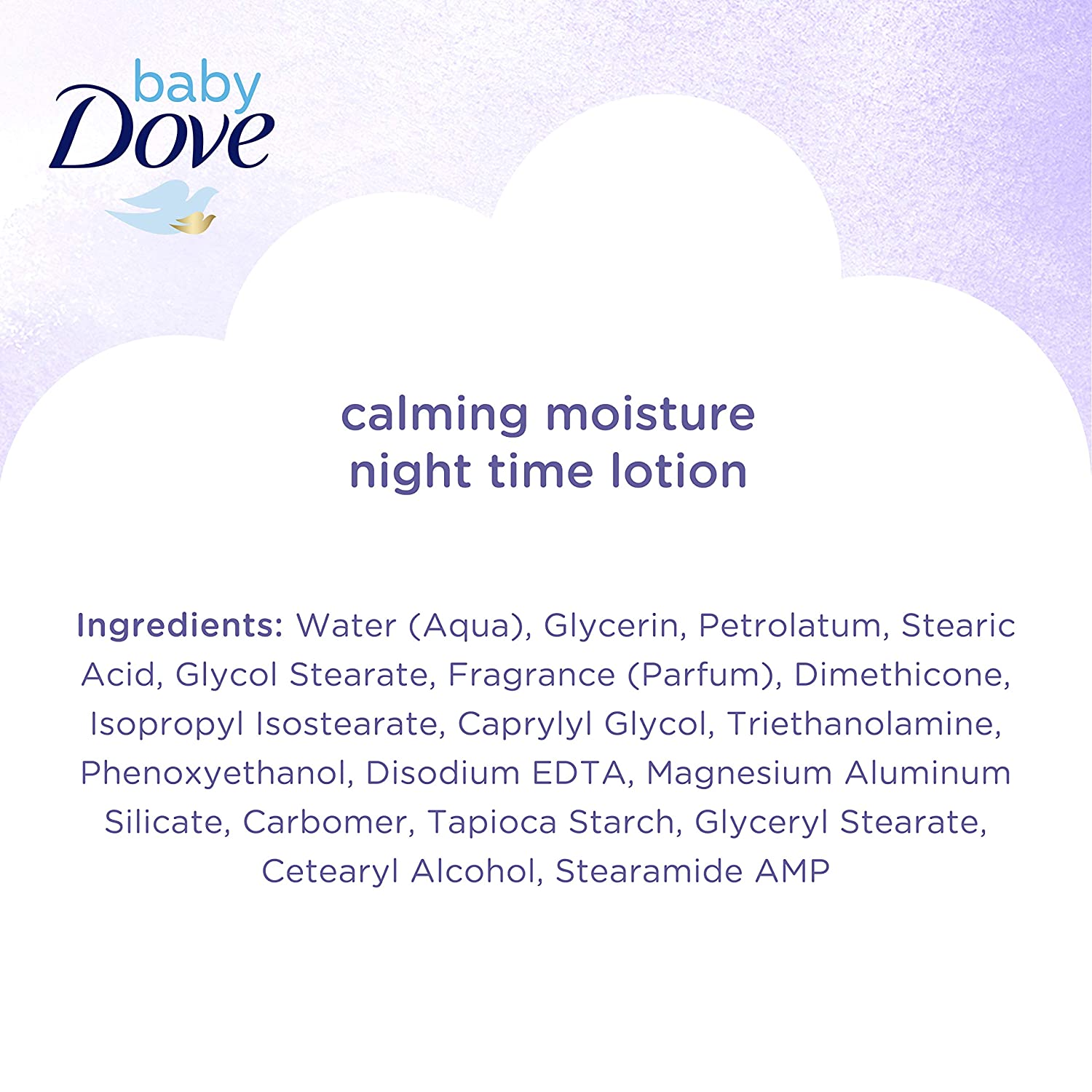 Looking for ways to help your baby sleep through the night? For experts and real parents, the key is sticking to a routine. Using baby body lotion with a calming scent can be key to your baby's sleep routine. That's why we formulated Baby Dove Calming Moisture Hypoallergenic Baby Lotion with a soothing scent to help baby wind down at bedtime while nourishing their delicate skin overnight. A gentle massage before bed is a great way to soothe your little one while nourishing their skin as your baby sleeps. And with a calming chamomile scent, this baby lotion is the perfect addition to baby’s nighttime routine. This scented lotion offers more than the gentle touch needed to care for delicate baby skin. It's made with 100% skin-natural nutrients, which are identical to those naturally found in skin, and prebiotic moisture to help replenish the essential moisture and nutrients that baby’s skin can lose overnight. The ultra-gentle, hypoallergenic formula is also created free from dyes, parabens, and phthalates. After washing your baby with Baby Dove Calming Moisture Hypoallergenic Wash and then drying, warm Baby Dove Calming Nights Baby Lotion in your hands and gently massage onto their body to nourish baby skin. We know there’s no right or wrong way to be a parent – only your way. That’s why Baby Dove is here to help give you confidence that you’re providing the best skin care for your baby's skin. Our Calming Moisture Hypoallergenic Baby Lotion is sold in 13 oz. and 20 oz bottles. Looking for something for extra sensitive skin? Look for Baby Dove Fragrance-Free Moisture Hypoallergenic Lotion.