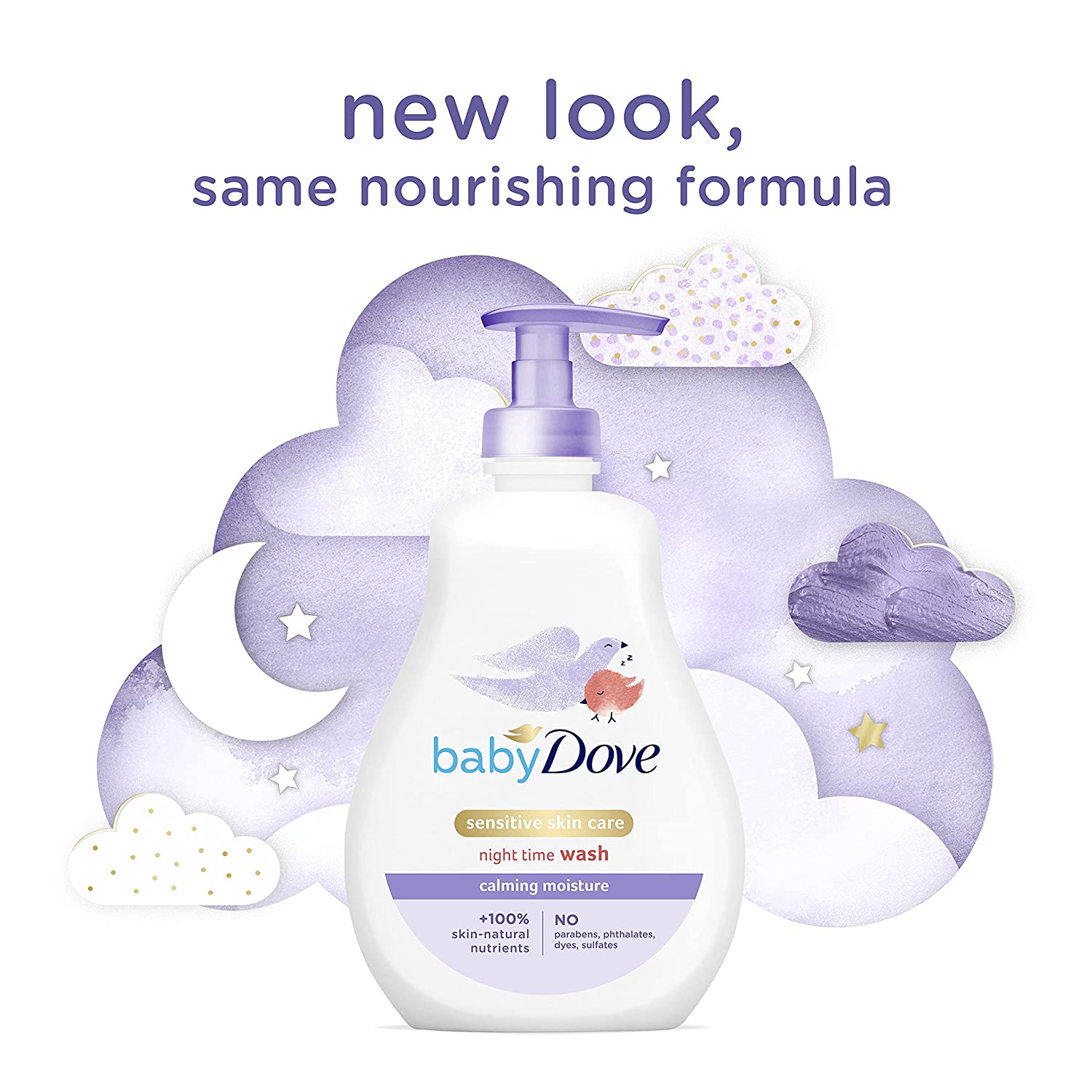 Looking for ways to help your baby sleep through the night? For experts and real parents, the key is sticking to a routine. A warm bath followed by a gentle massage can be key to your baby's sleep routine. That's why we formulated Baby Dove Calming Moisture Hypoallergenic Baby Wash with a soothing scent to help baby wind down at bedtime while nourishing their delicate skin. Baby bath time is a good time to start getting your little one ready for bed. And with a calming chamomile scent, this gentle baby wash is the perfect addition to baby’s nighttime bath. Tear-free and hypoallergenic, it goes beyond mildness to cleanse and care for baby’s delicate skin. This soothing baby bath wash is made with 100 percent skin-natural nutrients, which are identical to those naturally found in skin, and prebiotic moisture to help replenish the essential moisture and nutrients that baby’s skin can lose during bath time. And our caring baby wash and shampoo formula is created without dyes, parabens, phthalates, or sulfates and safety-tested and pediatrician recommended. With a rich and creamy lather, this baby wash leaves your little one feeling clean, soft, and ready for bed. And then hopefully you’ll be able to relax too, rather than wondering how to put a baby to sleep. We know there’s no right or wrong way to be a parent – only your way. That’s why Baby Dove is here to help give you confidence that you’re providing the best skin care for your baby's skin. Our Calming Moisture Hypoallergenic Baby Wash is sold in 13 oz. And 20 oz. bottles. Looking for something for extra sensitive skin. Look for Baby Dove Fragrance-Free Moisture Hypoallergenic Wash.