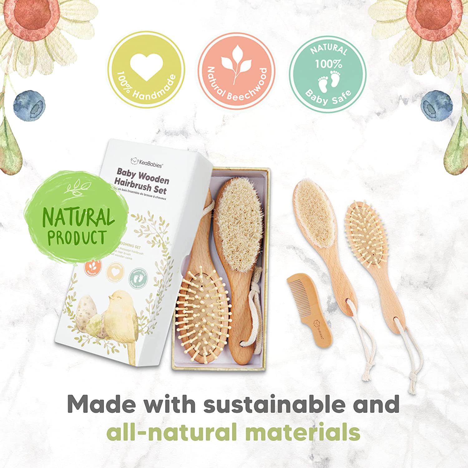 Baby Hair Brush - Natural Wooden Cradle Cap Brush with Soft Goat Bristle - Baby Brush Set for Newborns - Toddler Comb - Perfect Scalp Grooming Product for Infant, Toddler, Kids (Oval, Walnut)