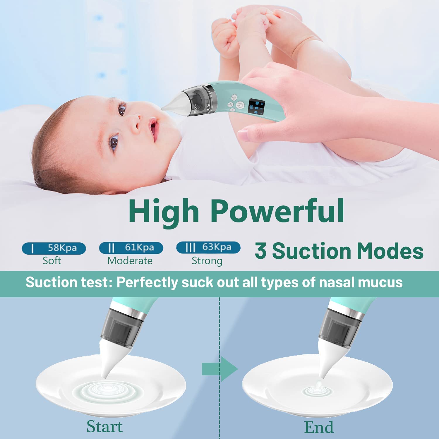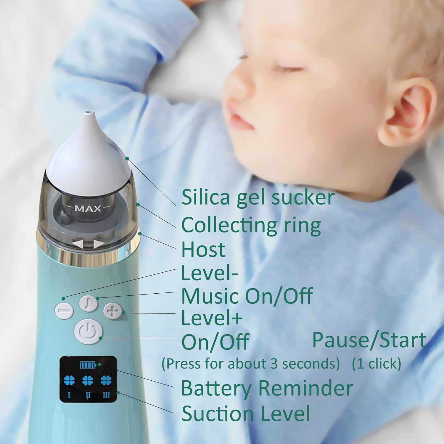 Baby Nasal Aspirator, Holnkme Electric Nose Suction with 4 Silicone Nose Tips for Infants with 3 Levels of Suction&Music Soothing Function Rechargeable Portable for Newborns and Toddlers