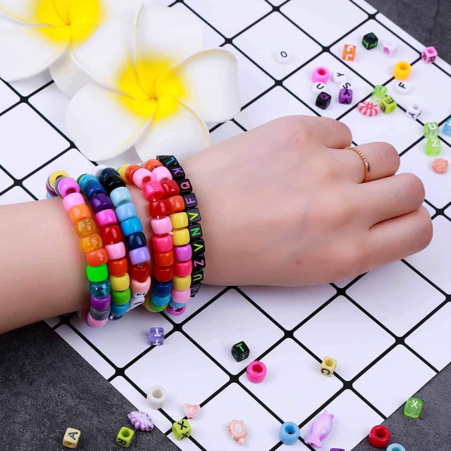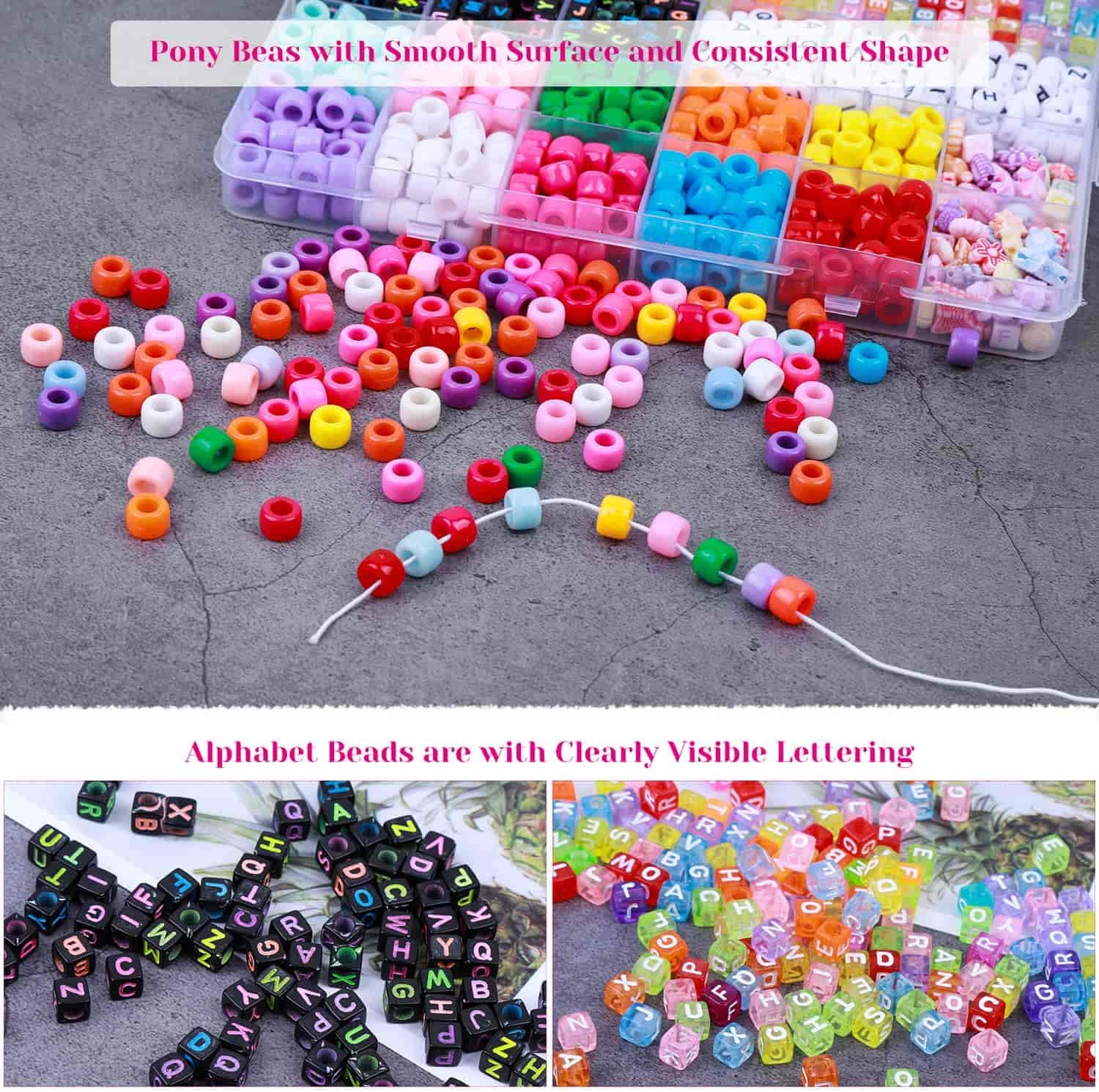 Bead Bracelet Making Kit, Shynek Bead Friendship Bracelets Kit with Pony Beads Letter Beads Charm Beads and Elastic String for Bracelet and Jewelry Making