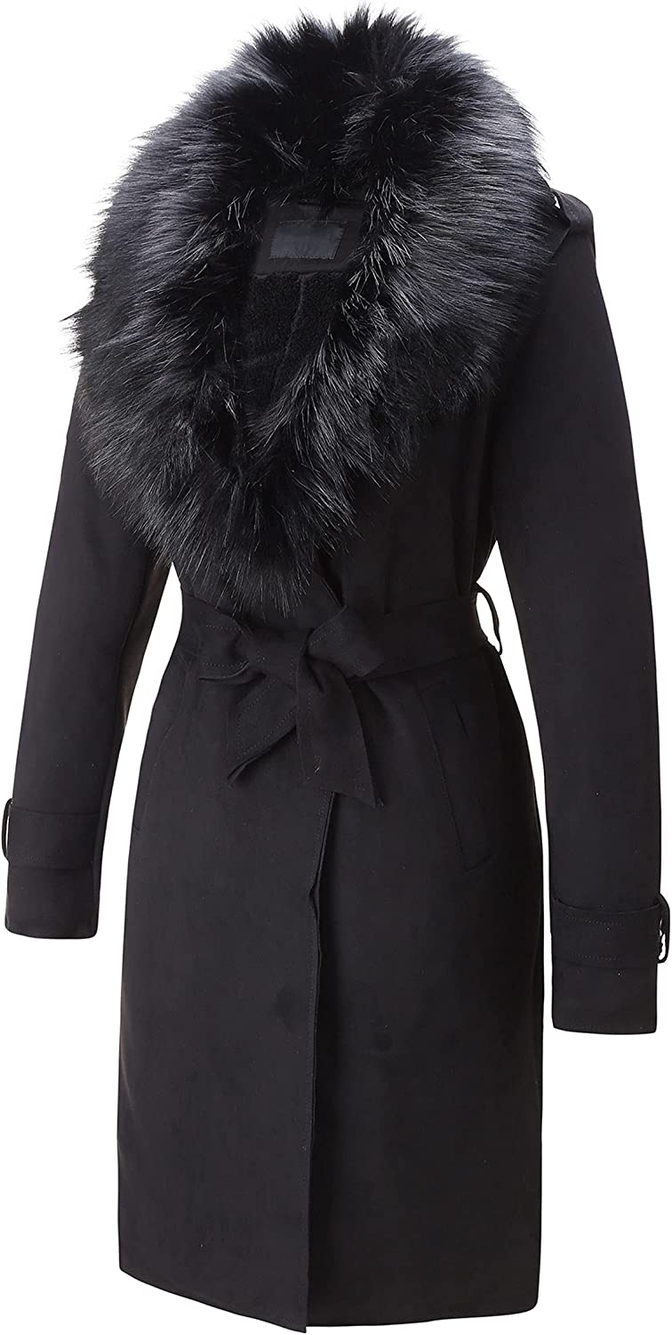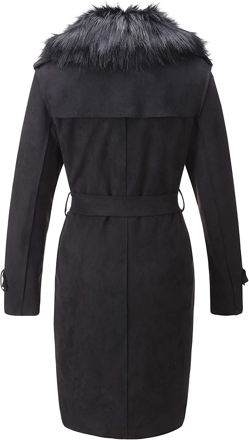 Bellivera Womens Faux Suede Leather Long Jacket, Fall and Winter Fashion Trench Coat Cardigan with Detachable Fur Collar