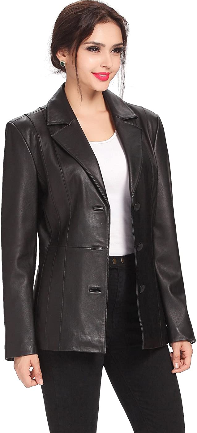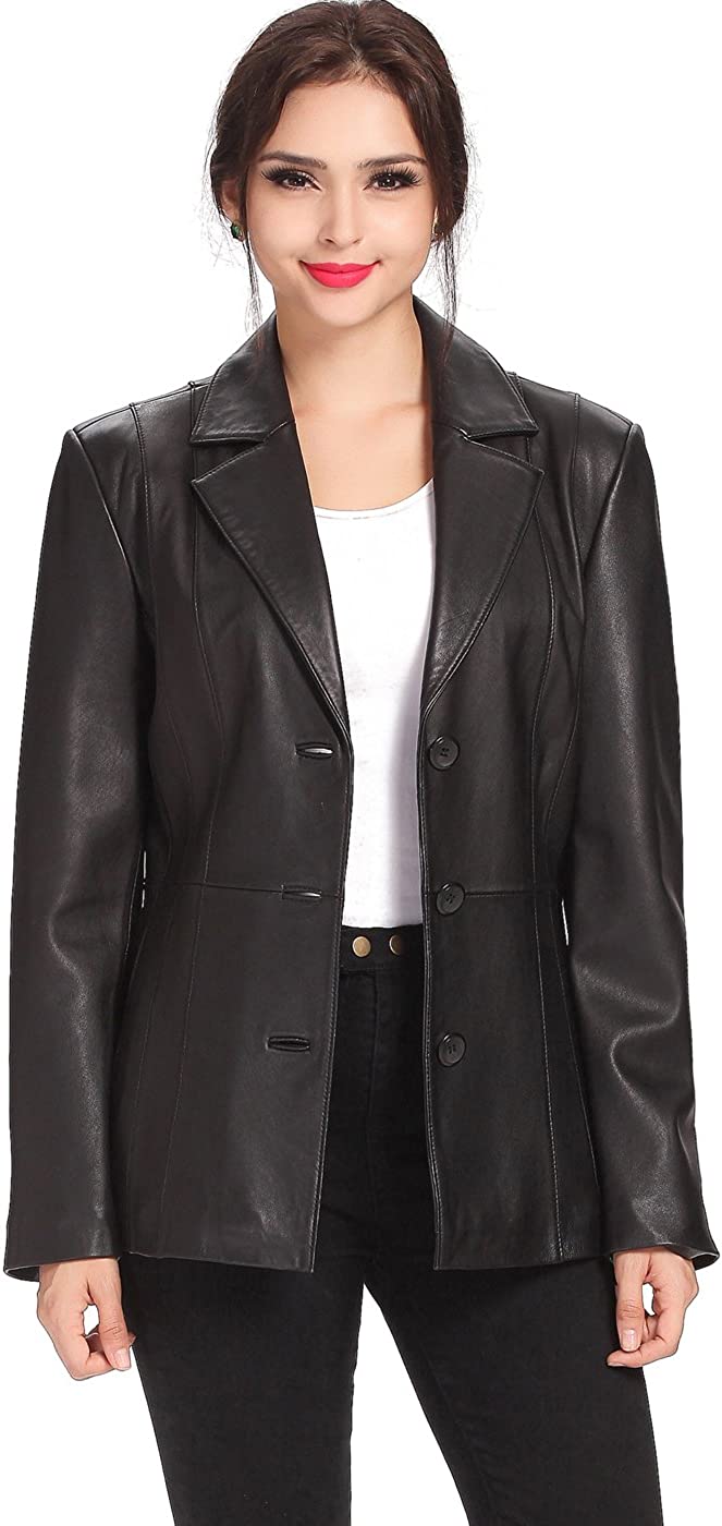 BGSD Women Crystal Lambskin Leather Blazer (Regular & Plus Size & Petite)