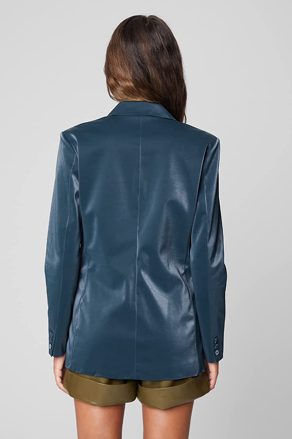 [BLANKNYC] Womens Vegan Leather Double Breasted Blazer, Comfortable Jacket & Stylish Coat