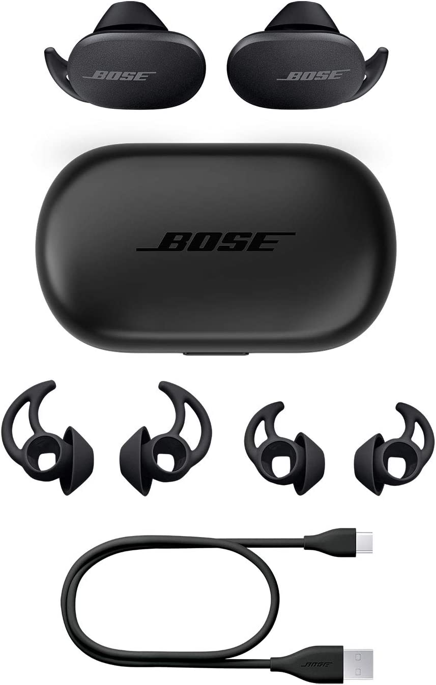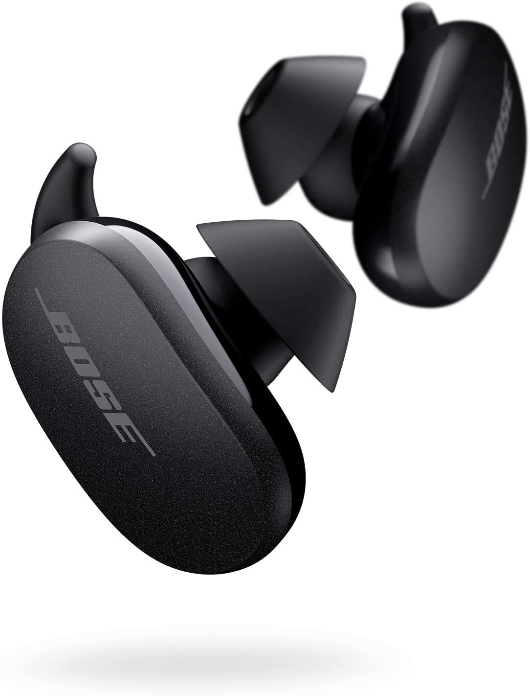 Better sound begins with better silence. So Bose engineered QuietComfort Earbuds with the world’s most effective noise cancelling and high-fidelity audio. Because when you eliminate distractions, music goes up, and so does passion. Baking. Coding. Rock climbing. And every other thing that makes you — you. Our controllable noise cancelling allows you to eliminate distractions as needed, or let in your surroundings with a full Transparency Mode. It sounds — and feels — as if you aren’t wearing earbuds at all. Better still? These truly wireless earbuds also include exclusive Volume-optimized Active EQ for high-fidelity audio that sounds full and balanced at any volume. These comfortable earbuds are easy to wear all day long because every surface that touches your ear is made of soft silicone. Instead of buttons, these true wireless earbuds feature a capacitive touch interface. Tap and press the surface to control your content — just like you would with your phone. And the instant you take a wireless earbud out of your ear, your music, podcast, or video automatically pauses so you don’t miss a second. They’re also IPX-4 rated so sweat, water, and the weather won’t get in the way of your music. Bose QuietComfort Earbuds are compatible with iOS and Android and optimized for Bluetooth 5.1 so you’ll enjoy a strong and reliable wireless signal as long as you’re within 30 feet of your paired device. On a single charge you can expect up to six hours of playback time, and the wireless charging case gives you up to 12 more hours of listening time. For your convenience, the charging case is compatible with any Qi-certified wireless charging mat (not included). Bose QuietComfort Earbuds are available in your choice of Triple Black or Soapstone. Powerful yet compact, you’ll never need to take them off.