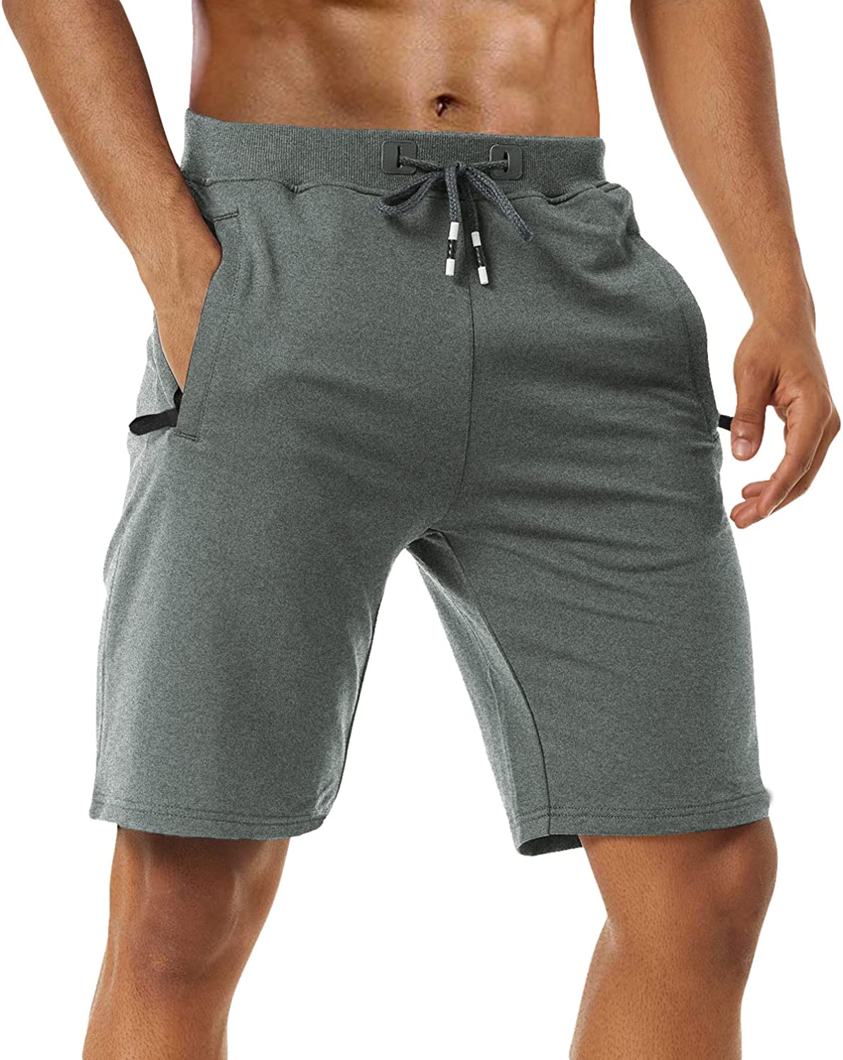 Boyzn Men's 2 Pack Athletic Shorts Comfortable Cotton Workout Shorts Elastic Waist Running Shorts with Zipper Pockets