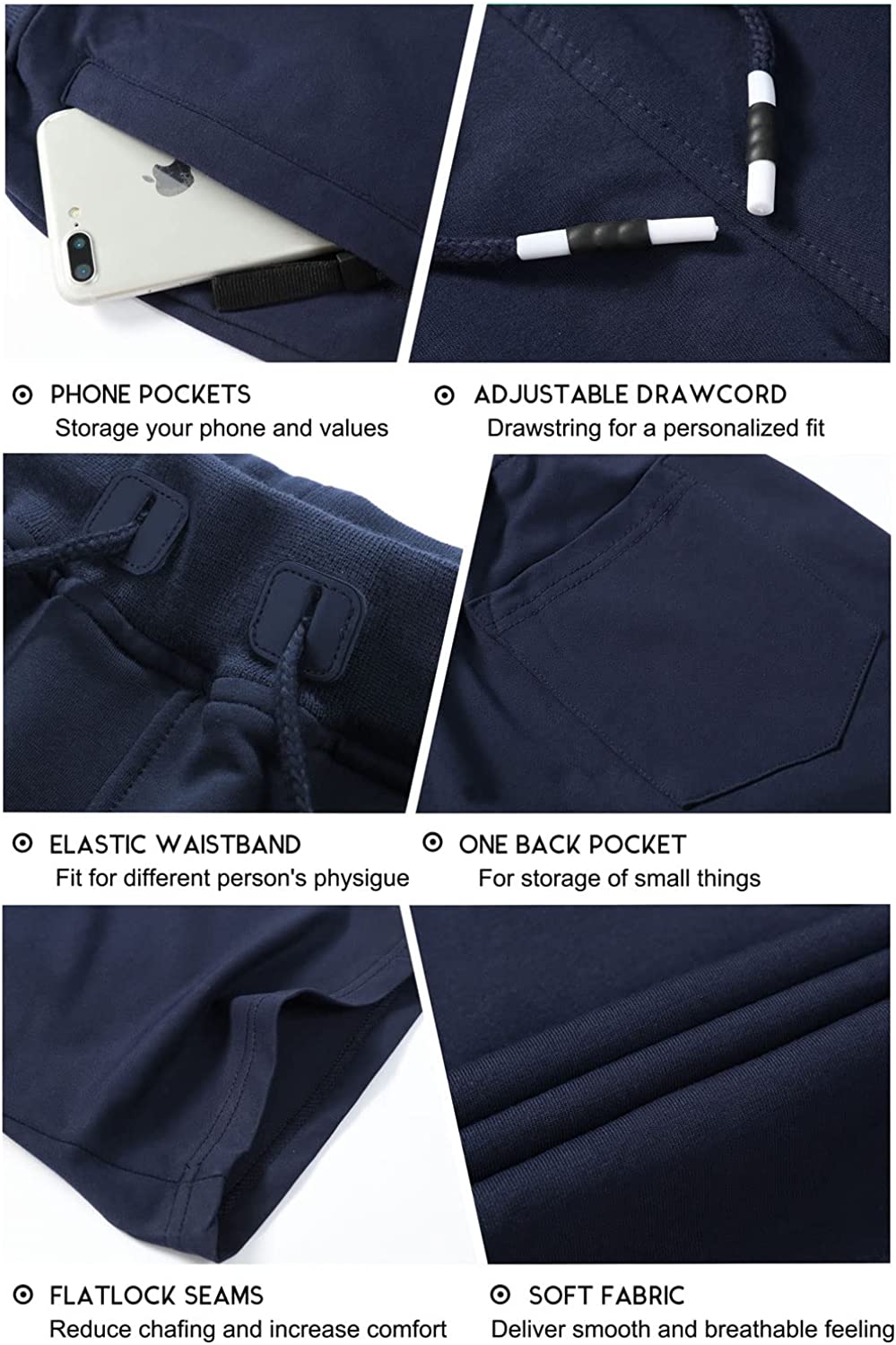 Boyzn Men's 2 Pack Athletic Shorts Comfortable Cotton Workout Shorts Elastic Waist Running Shorts with Zipper Pockets