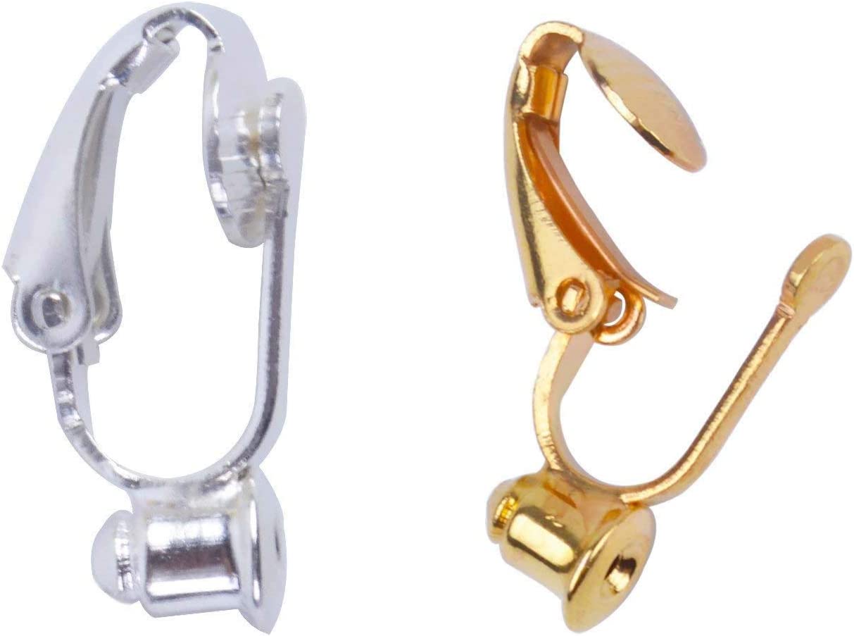 BronaGrand 20 Pieces Earring Clip Backs Clip-on Earring Converter Components Findings with Post for None Pierced Ears, Silver and Gold