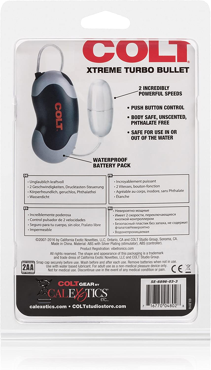 The erotic toy experts at CalExotics and the male-centric pleasure innovators at Colt have partnered to create a line of toys dedicated to the masculine pleasure seeker. Our Colt Xtreme Turbo Bullet packs a powerful two-speed punch into a compact package. This beginner friendly, easy to control stimulator uses two intense vibe speeds to massage the prostate or perineum for intense full body satisfaction. Enjoy powerful, foolproof pleasure with this two-speed waterproof bullet delivering thrilling external and internal stimulation. Get steamy with this waterproof silver egg and controller to turn your next dip into a pleasure packed adventure. No matter how you use it, our extreme vibrating bullet is here for your next pleasurable experience. Don’t forget to customize your bullet with erotic accessories, like CalExotic’s flexible bullet sleeves or ticklers, and adapt to your ever-changing tastes.