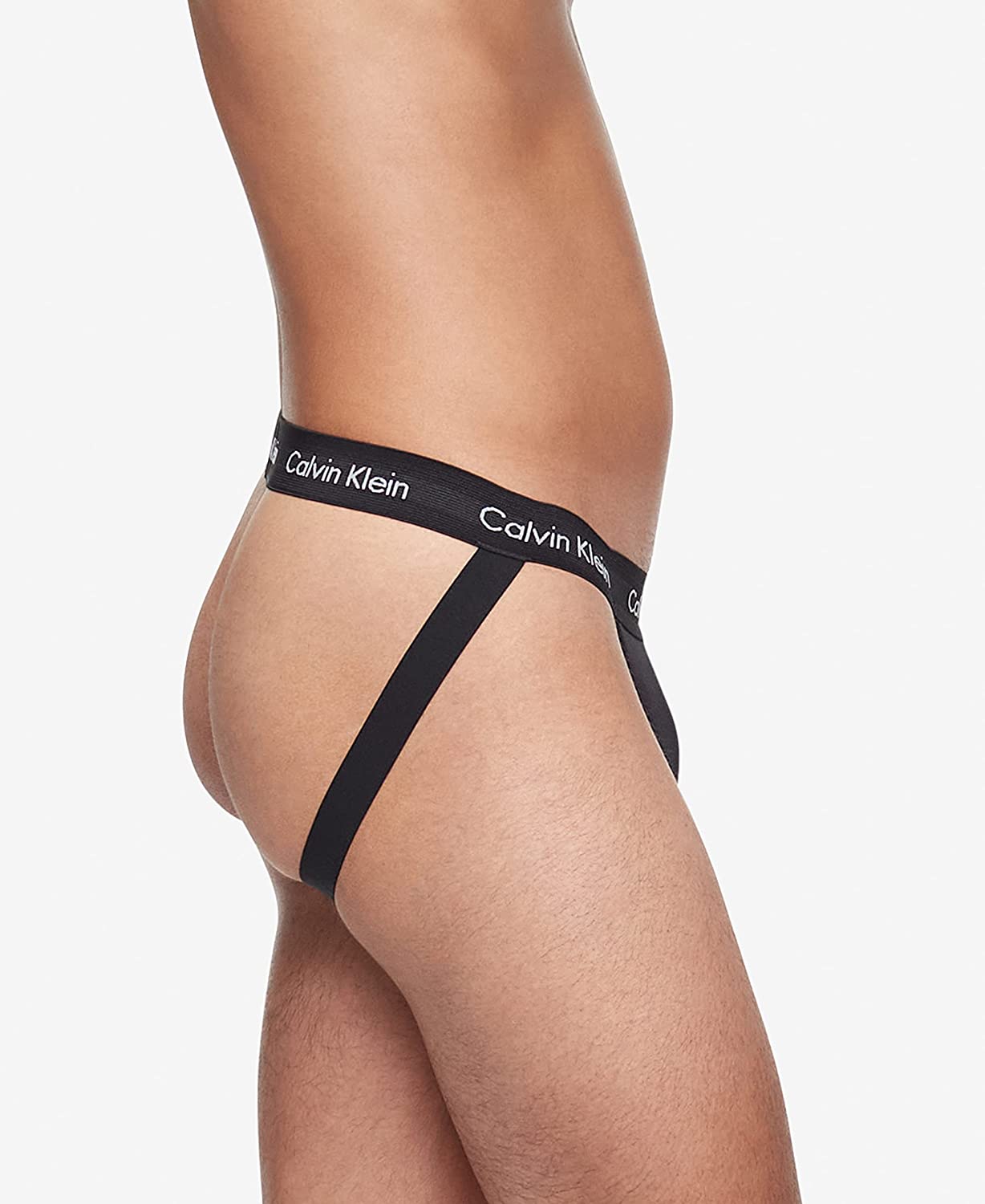 A Calvin Klein icon. The essential designer jock strap reinvented in extra-soft cotton stretch with a low rise fit. Made with wicking to keep you cool and dry. Designed with the original Calvin Klein logo waistband, this is a sporty look that feels sexy everyday. For the minimalist.