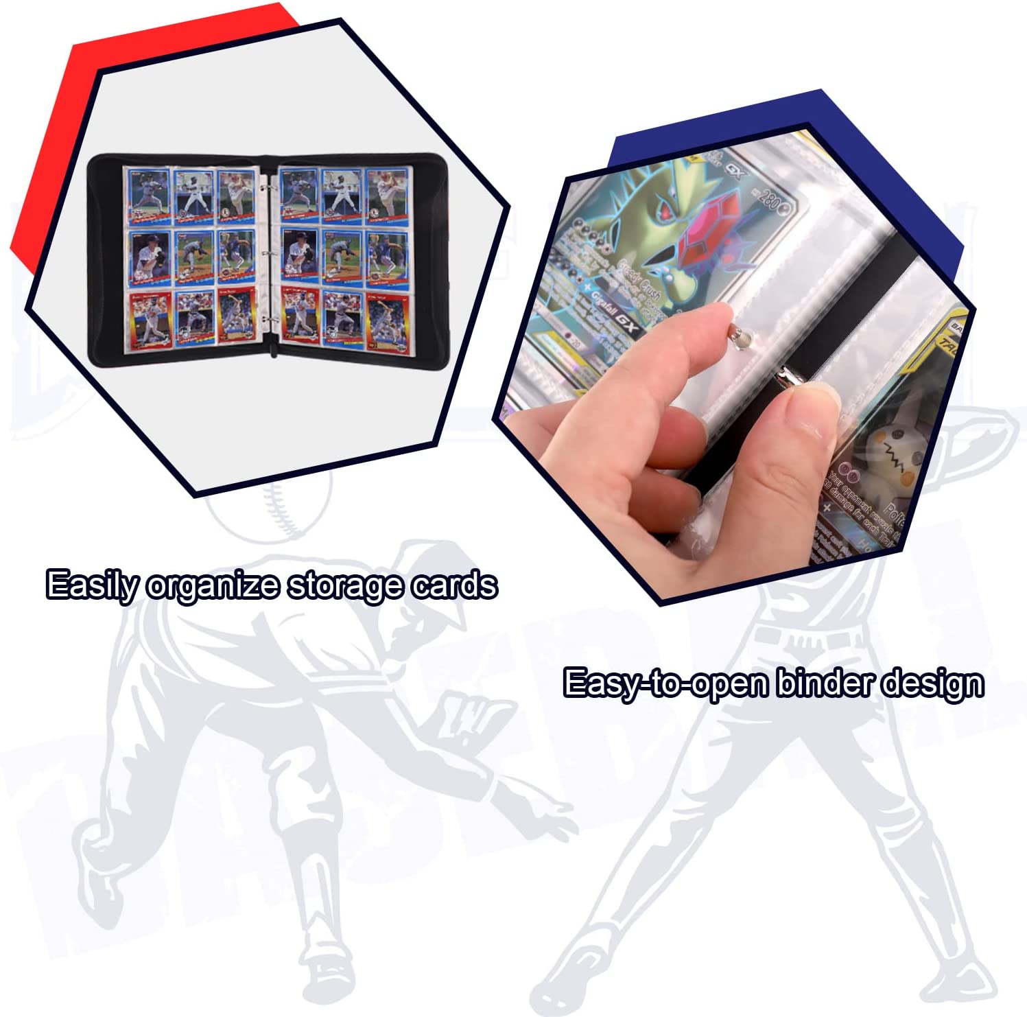 Card Binder 9 Pocket, Trading Card Binder with Sleeves, Baseball Card Binder, Sports Card Binder Collectible Trading Card Albums Fits 900 Cards with 50 Removable Sleevesves