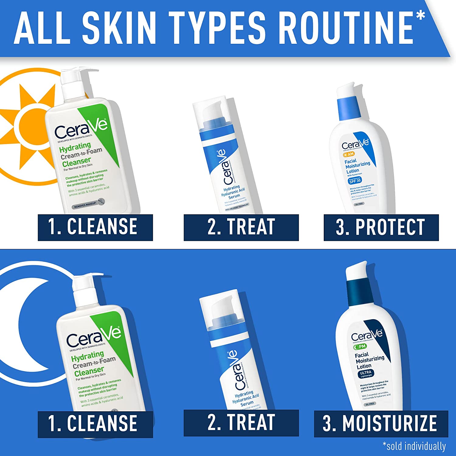 Developed with dermatologists, CeraVe Hyaluronic Acid Serum replenishes skin’s hydration while helping to improve the appearance of dry lines for instantly smoother, softer skin. This refreshing gel-cream formula contains 3 essential ceramides, our highest concentration of hyaluronic acid, and vitamin B5. This lightweight facial serum blends seamlessly into skin and can be applied alone or underneath a CeraVe moisturizer.
