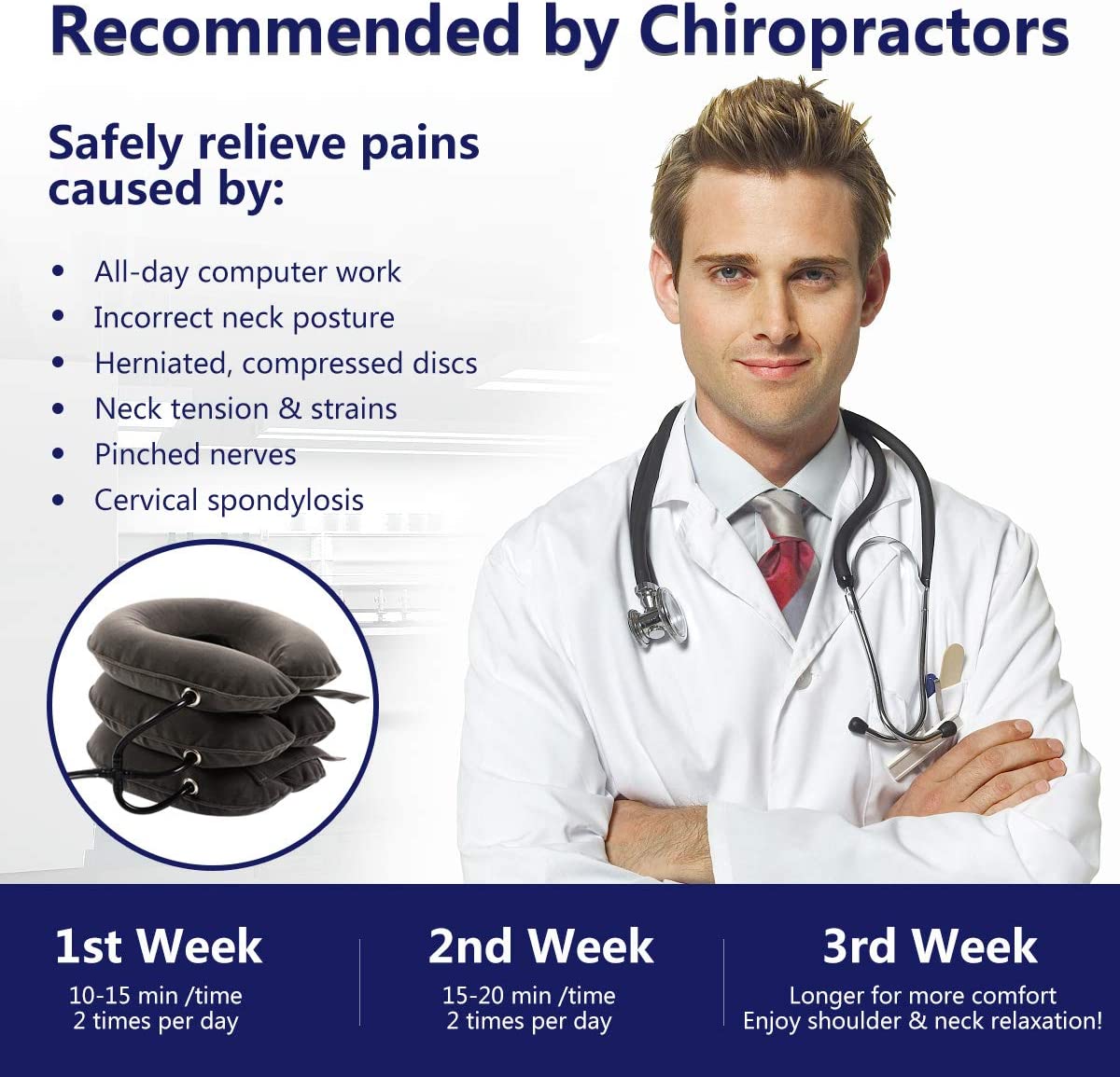Cervical Neck Traction Device for Instant Neck Pain Relief - Inflatable & Adjustable Neck Stretcher Neck Support Brace, Best Neck Traction Pillow for Home Use Neck Decompression