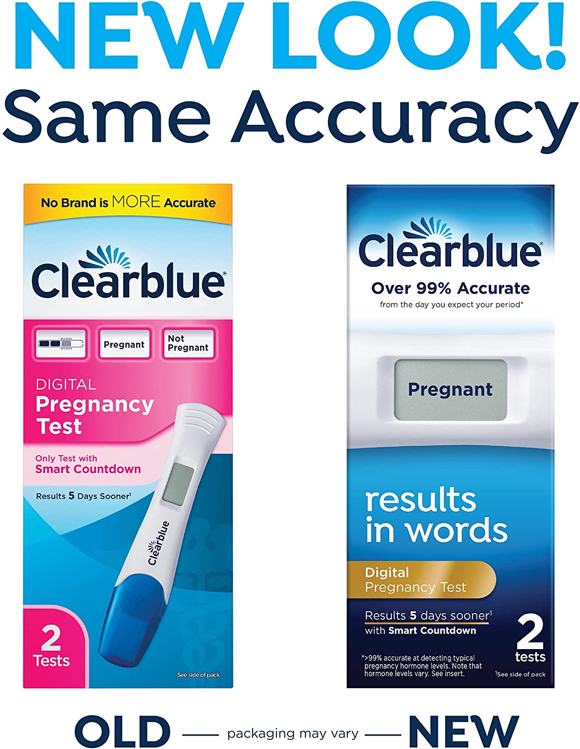 The Clearblue Digital Pregnancy Test with Smart Countdown (Prueba de embarazo Digital Clearblue con cuenta regresiva inteligente) is the only test that has a unique progress indicator that counts down to the result and gives you confidence every step of the way until your result is digitally displayed in words. The Clearblue Digital Pregnancy Test with Smart Countdown with its wide tip makes it easy to take the test accurately. The unique Floodguard Technology helps reduce the #1 reported cause of user error by over 70%(4) by keeping excess urine from flooding the test strip. The Clearblue Digital Pregnancy Test with Smart Countdown gives you accuracy and reassurance while you wait for your result.