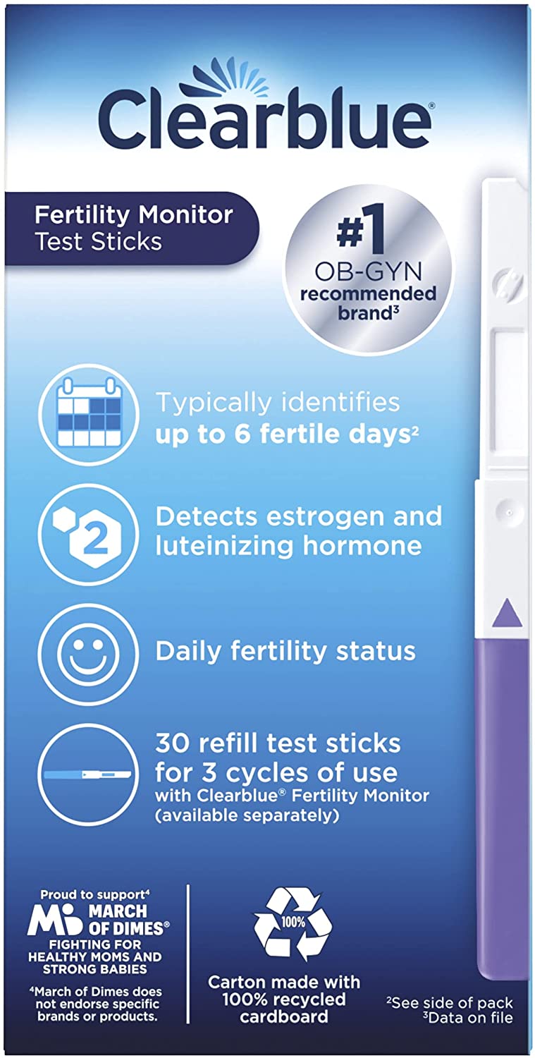 To use the Clearblue® Fertility Monitor – the #1 brand recommended by OB/GYNs – to maximize your chances of getting pregnant, you will need to purchase the Clearblue Fertility Monitor Test Sticks separate from the device. Clearblue Fertility Monitor Test Stick packs include 30 individually wrapped test sticks. The majority of women will need 10 test sticks each cycle. Women with irregular or long cycles may have to use 20 test sticks each cycle.