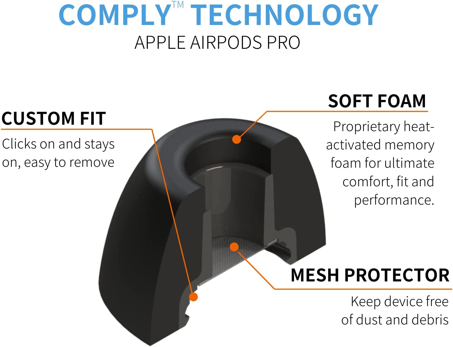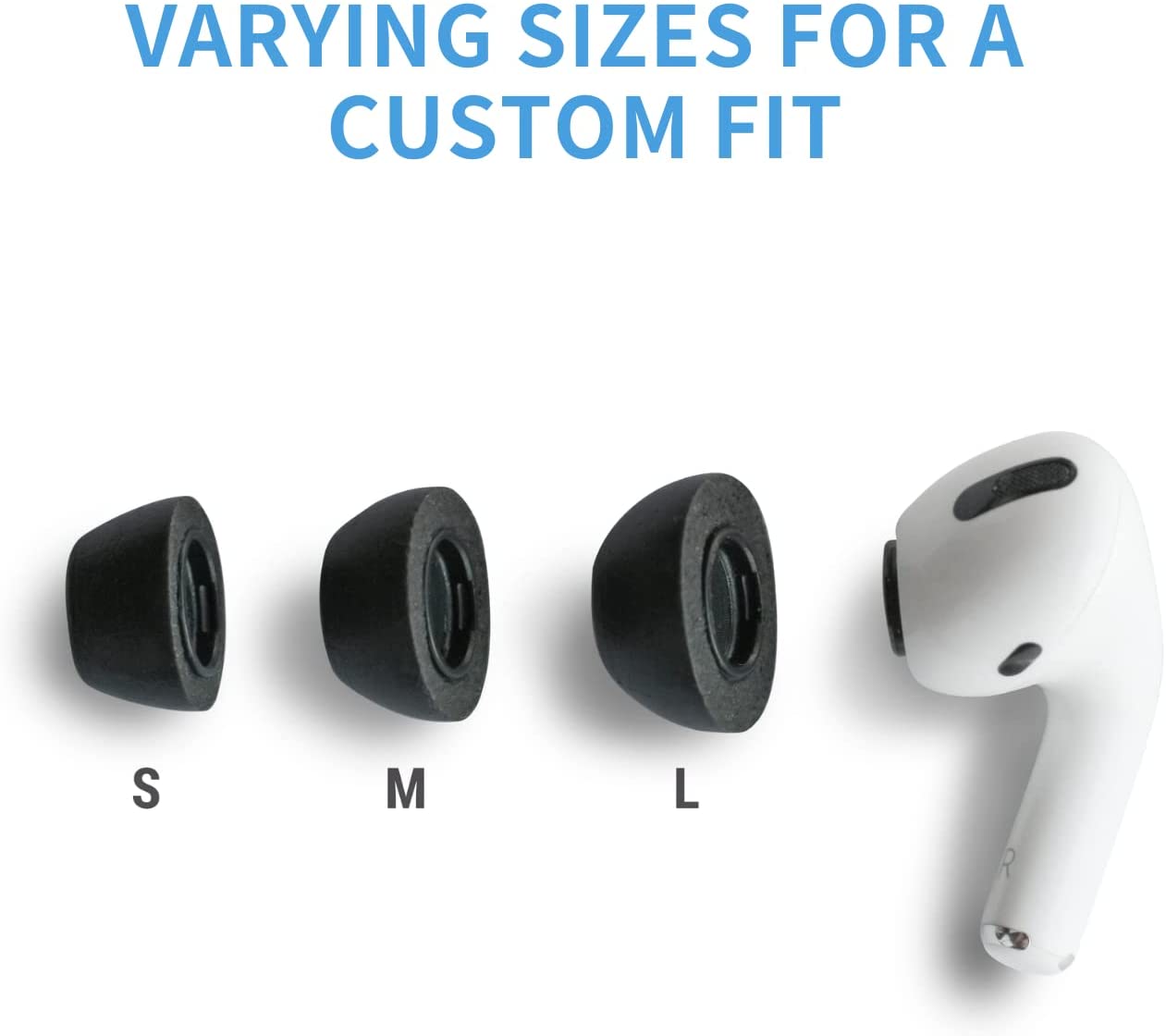 Similar to the original Apple silicone tips, these premium AirPods Pro foam earphone tips easily attach to the device. These replacement memory foam earbud tips feature a comfortable custom in-ear fit allowing the tips to fit in the charging case while charging, multiple sizes and were specifically designed to be compatible with the Apple Air Pods Pro. Clicks on. Stays put. All day comfort for any activity. Newly designed for reliable AirPods Pro connection. Apple AirPods Pro earbud tips are the perfect accessory, now your AirPods Pro can fit you and your lifestyle.