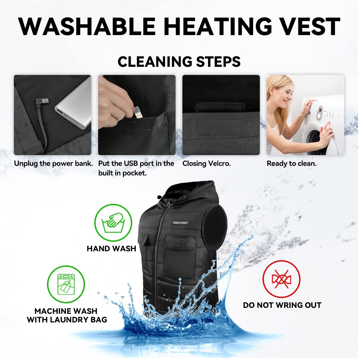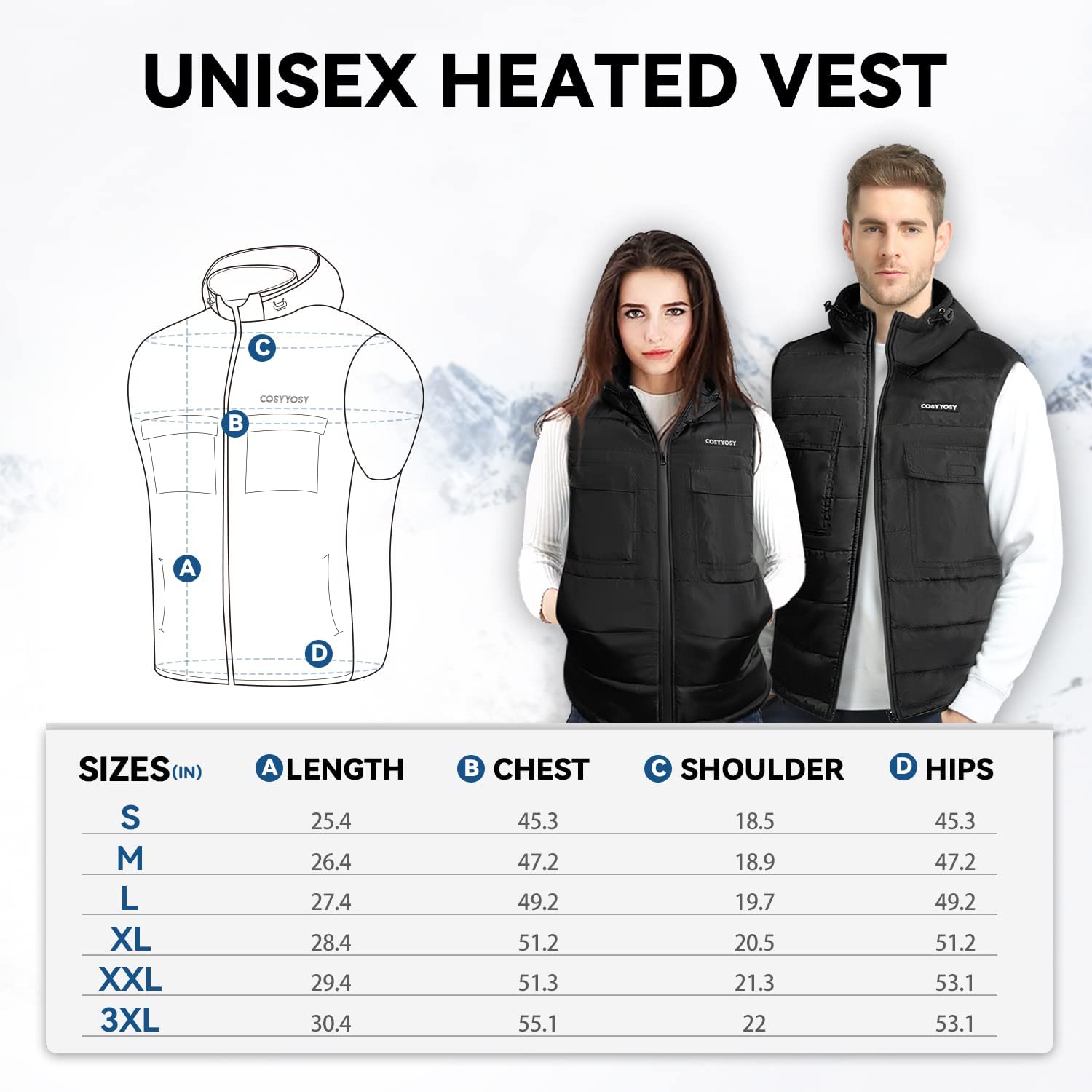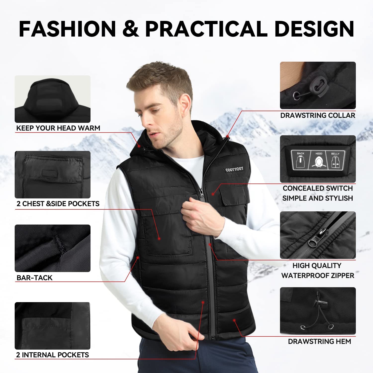 COSYYOSY Heated Vest with Hood for Men/Women, 6 Pockets, 5 Heating Panels, 3 Modes, Electric Outdoors Coat