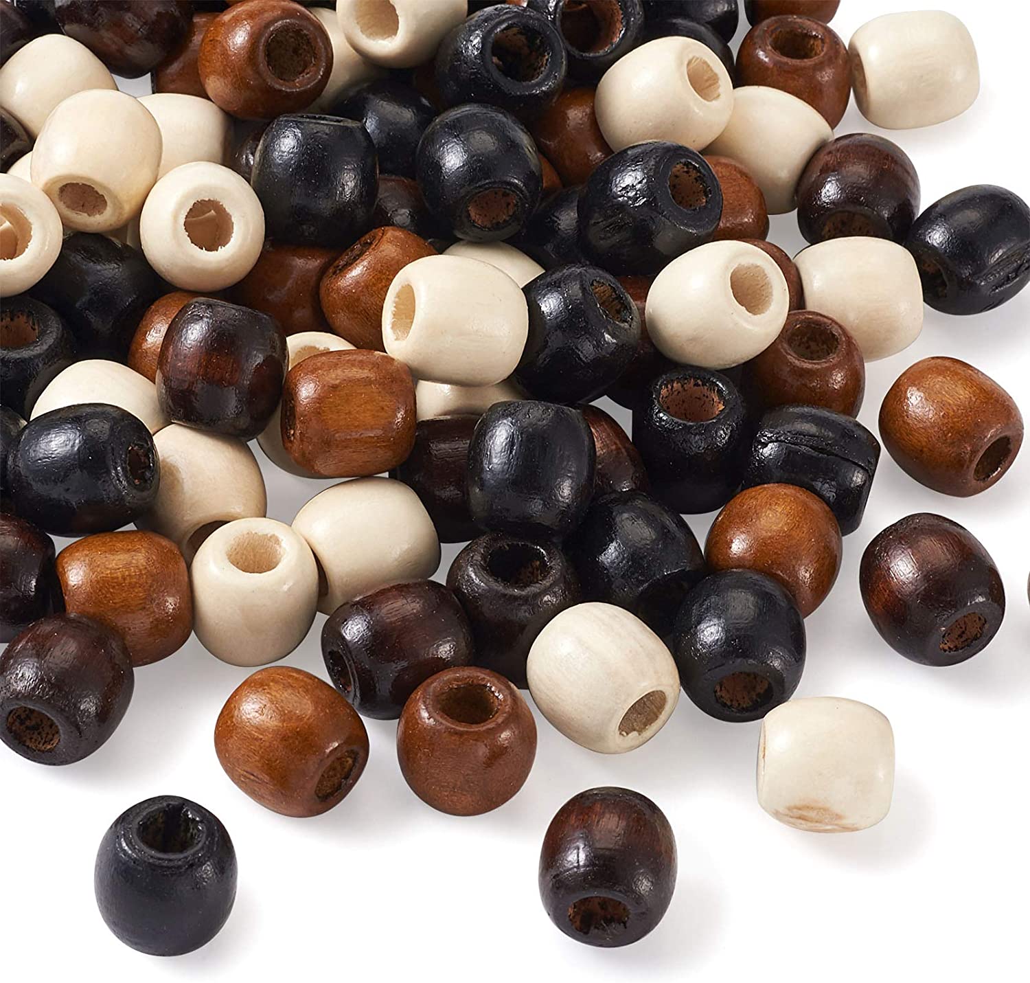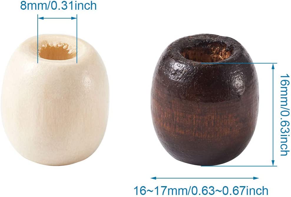 Craftdady 200Pcs Large Hole Barrel Wood European Loose Beads 4 Colors Natural Wooden Dreadlock Hair Braid Beads 16x16-17mm for Macrame Rosary Bracelet Jewelry Craft Making Hole: 8mm