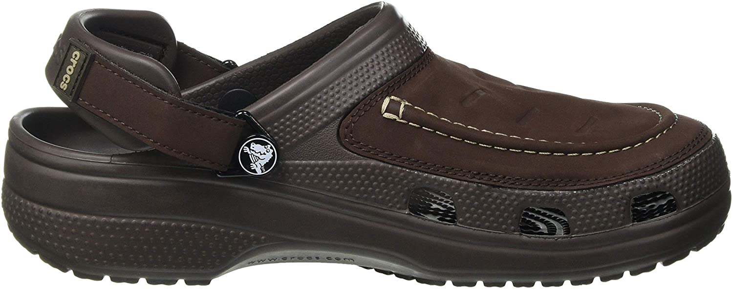 Faux leather uppers and adjustable heel straps add a dose of ruggedness to the Men’s Classic Yukon Vista II Clogs. With a hook-and-loop closure system that also pivots forward, you’re free to choose between a hands-free slide or secured fit. Croslite foam outsoles and the superbly cushioned LiteRide footbeds can handle the outdoor elements while providing true comfort around the campfire, on the trail, or back home.