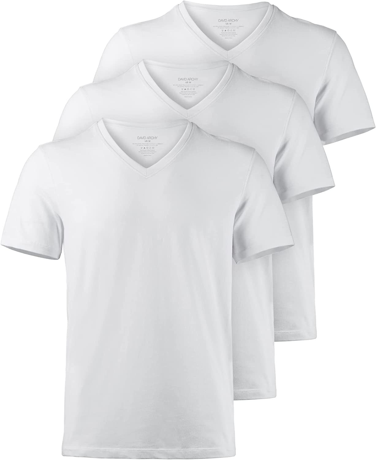 DAVID ARCHY Men's Undershirts Soft Micro Modal V-Neck Breathable T-Shirts 3 Pack