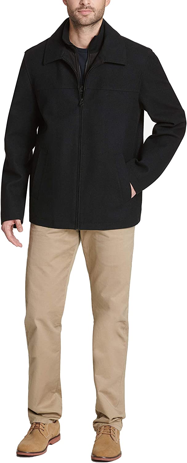 Dockers Men's Wool Blend Open Bottom Jacket with Quilted Bib