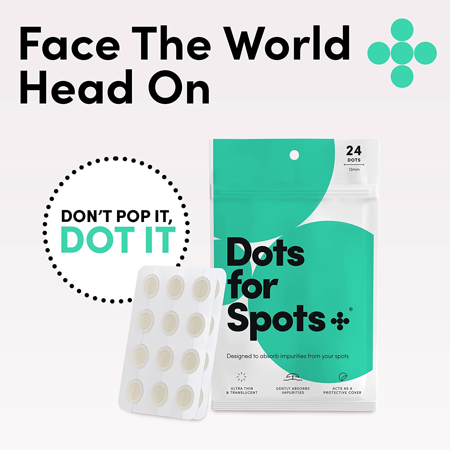 Dots for Spots Pimple Patches – Easy to Use, Translucent, Hydrocolloid Acne Patch Treatment for Spots & Blemishes - Face, Nose, Chin, Back, & Body Zit Stickers - Visible Results, Travel Size, Vegan, &