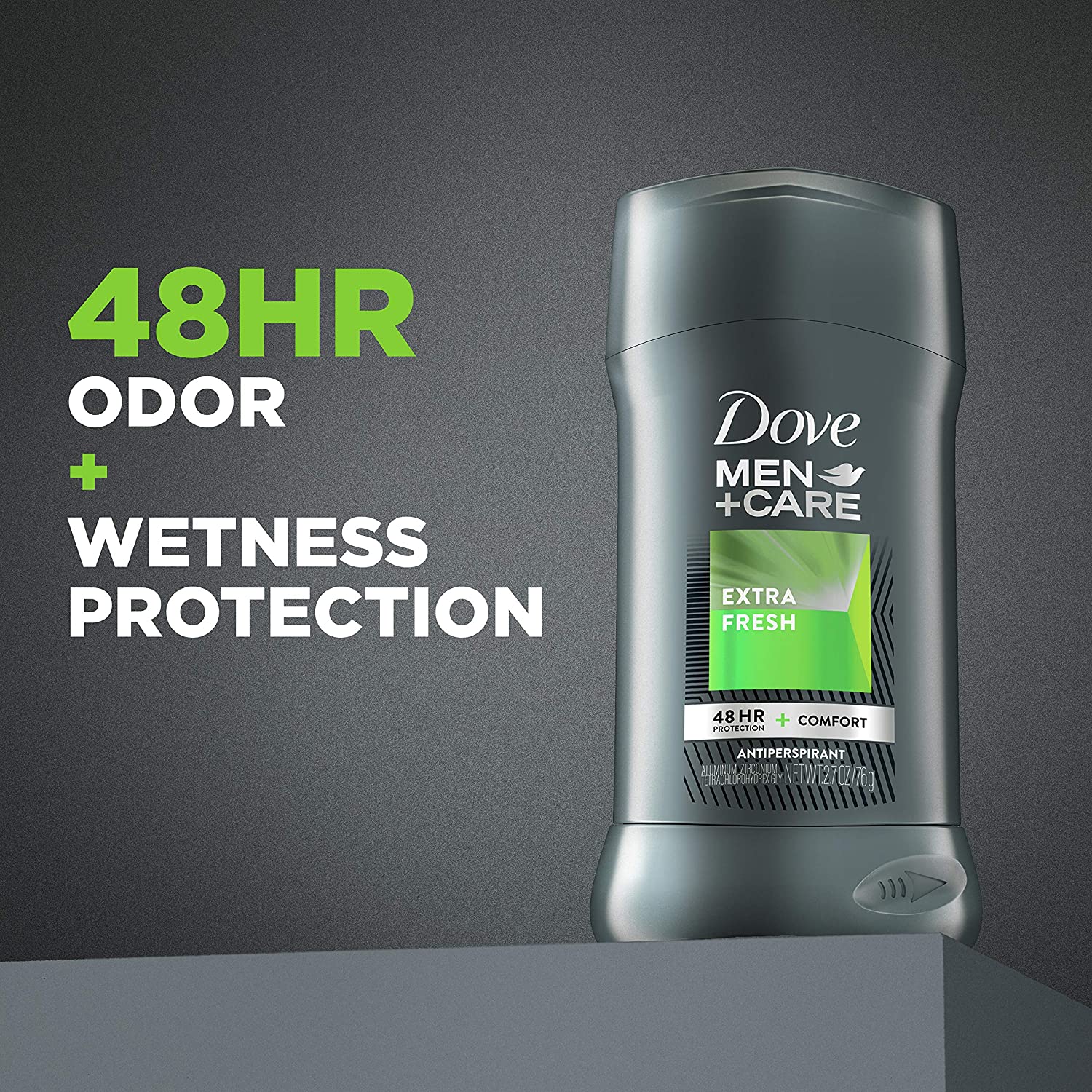Looking for an antiperspirant deodorant for men that’s designed to keep you feeling fresh and confident? Try Dove Men+Care Extra Fresh Antiperspirant Deodorant Stick. Our Extra Fresh antiperspirant deodorant provides powerful 48-hour protection against sweat and odor for lasting freshness. This antiperspirant for men is formulated with our Triple Action Moisturizer and vitamin E to deliver active skin moisturization and helps protect against skin irritation. It's tough on sweat, not on skin. Dove Men+Care Extra Fresh Antiperspirant Deodorant features an energizing citrus scent to invigorate your senses and leave you feeling fresh all day. Simply apply Dove Men+Care Extra Fresh Antiperspirant Deodorant in an even layer onto each of your underarms for best results. You now have the powerful protection you need. Looking for more Dove Men+Care skin care products? Try the full range of Dove Men+Care products, including body washes, face and body bars, antiperspirant deodorants, dry spray antiperspirant deodorants, hair and skin care products. All Dove products are cruelty-free, following Dove's global commitment not to test on animals. Dove Men+Care champion active fathers and the need for paid paternity leave. Find out more about their work in celebrating fatherhood and raising awareness around parental leave on the Dove Men+Care site.