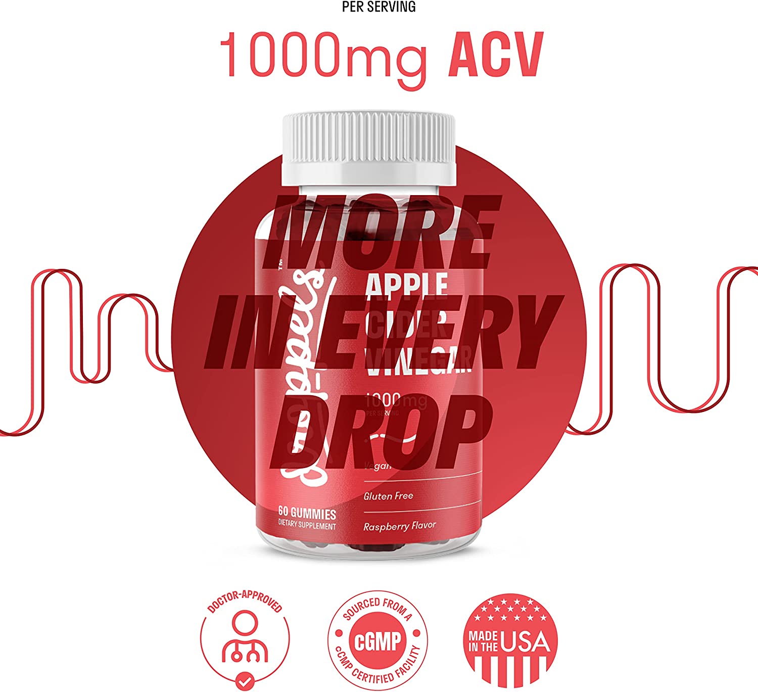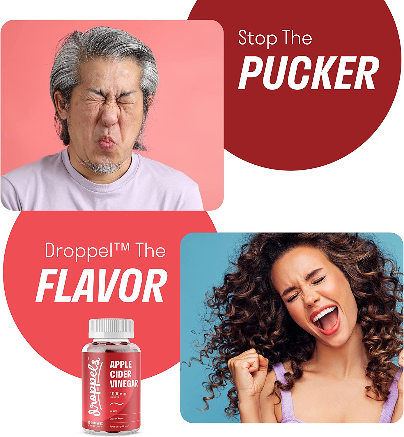Droppels Apple Cider Vinegar Gummies 1000mg with Beet Root & Pomegranate - Supports Digestion - Vegan, Gluten Free, Made in USA - Rasberry Apple Flavor - 60 Count