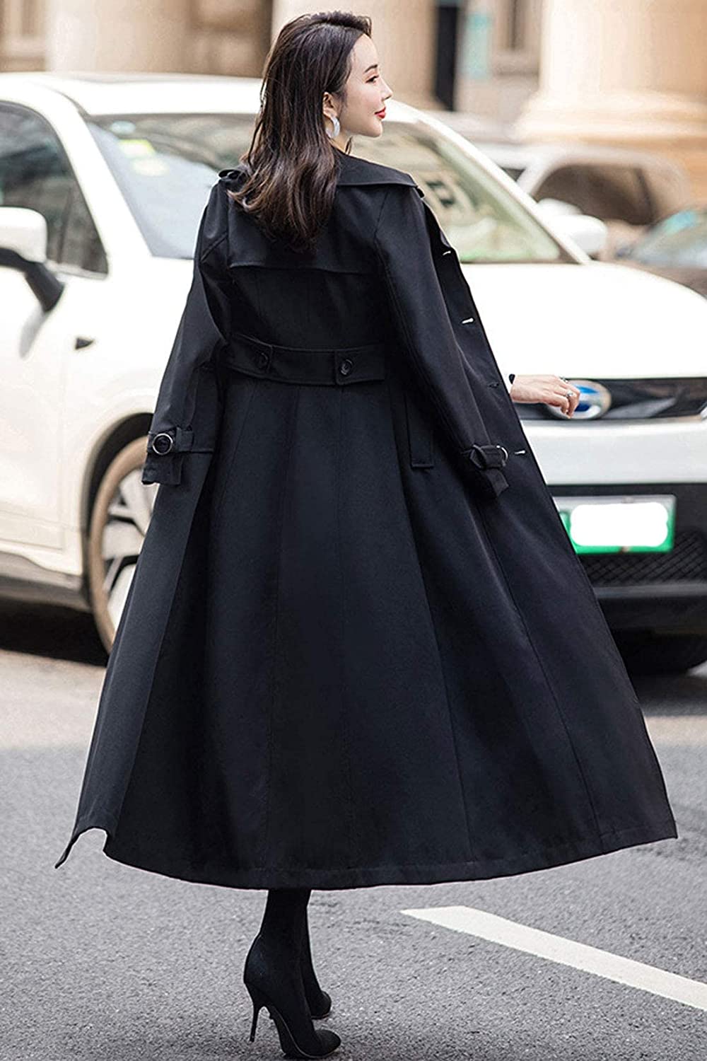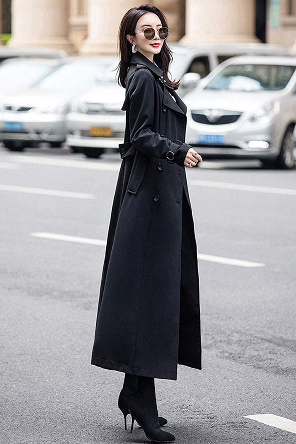 ebossy Women's Double Breasted Duster Trench Coat Slim Full Length Maxi Long Overcoat