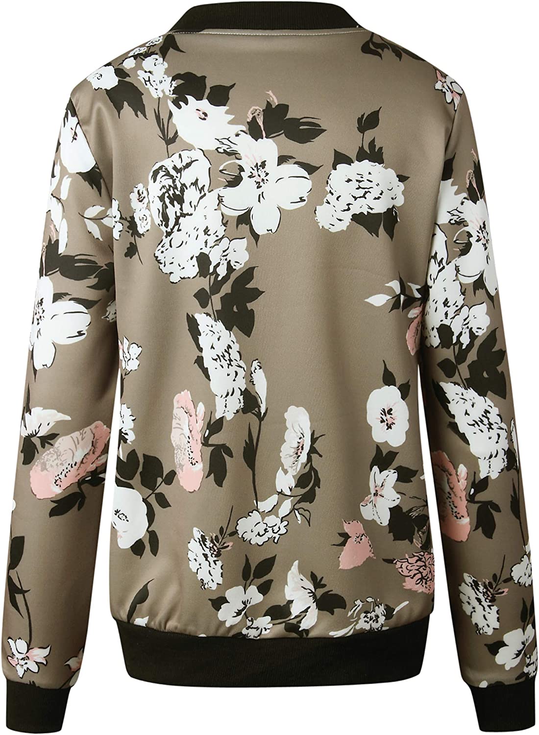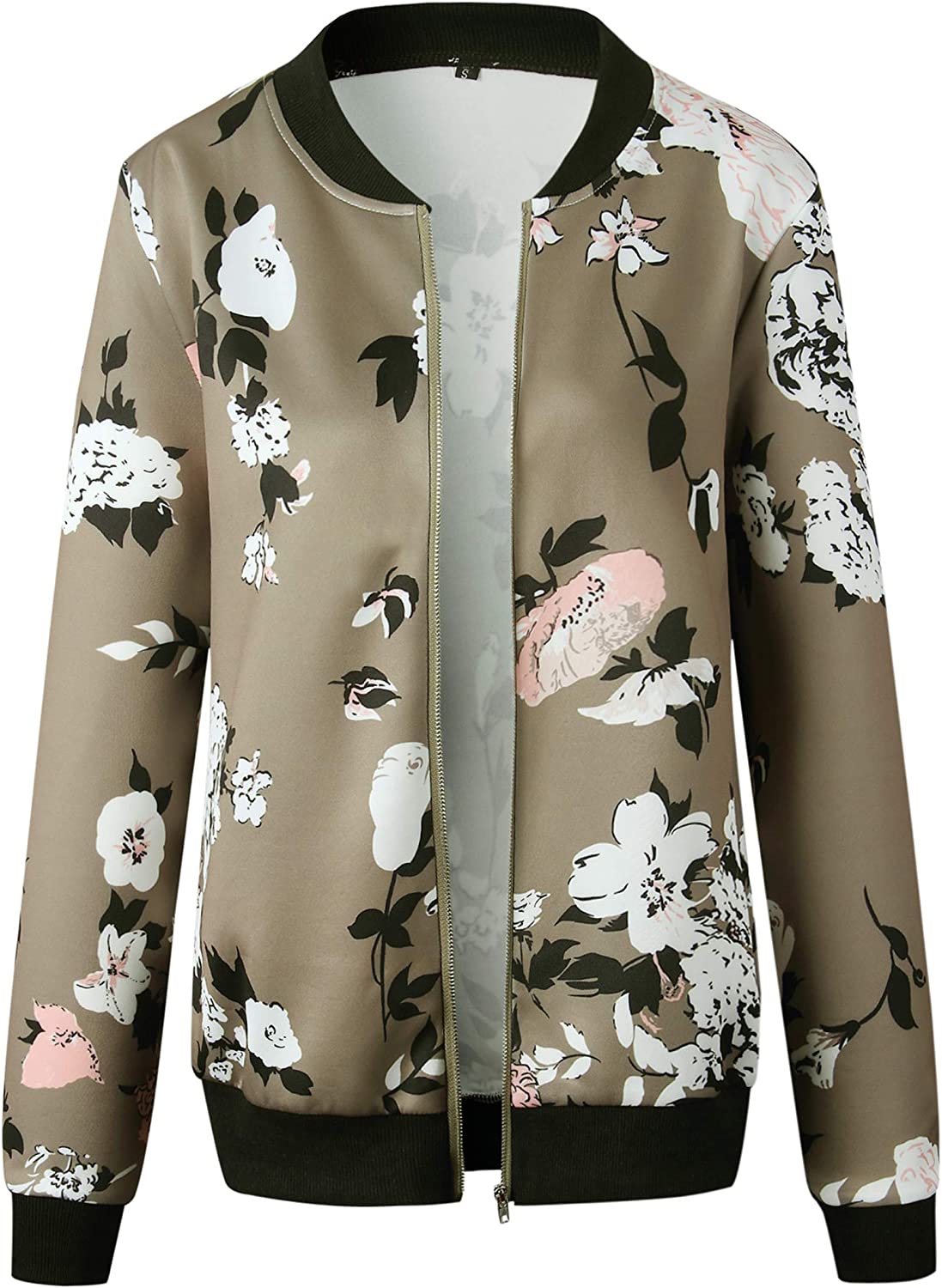 ECOWISH Womens Jackets Lightweight Zip Up Casual Inspired Bomber Jacket Leopard Coat Stand Collar Short Outwear Tops