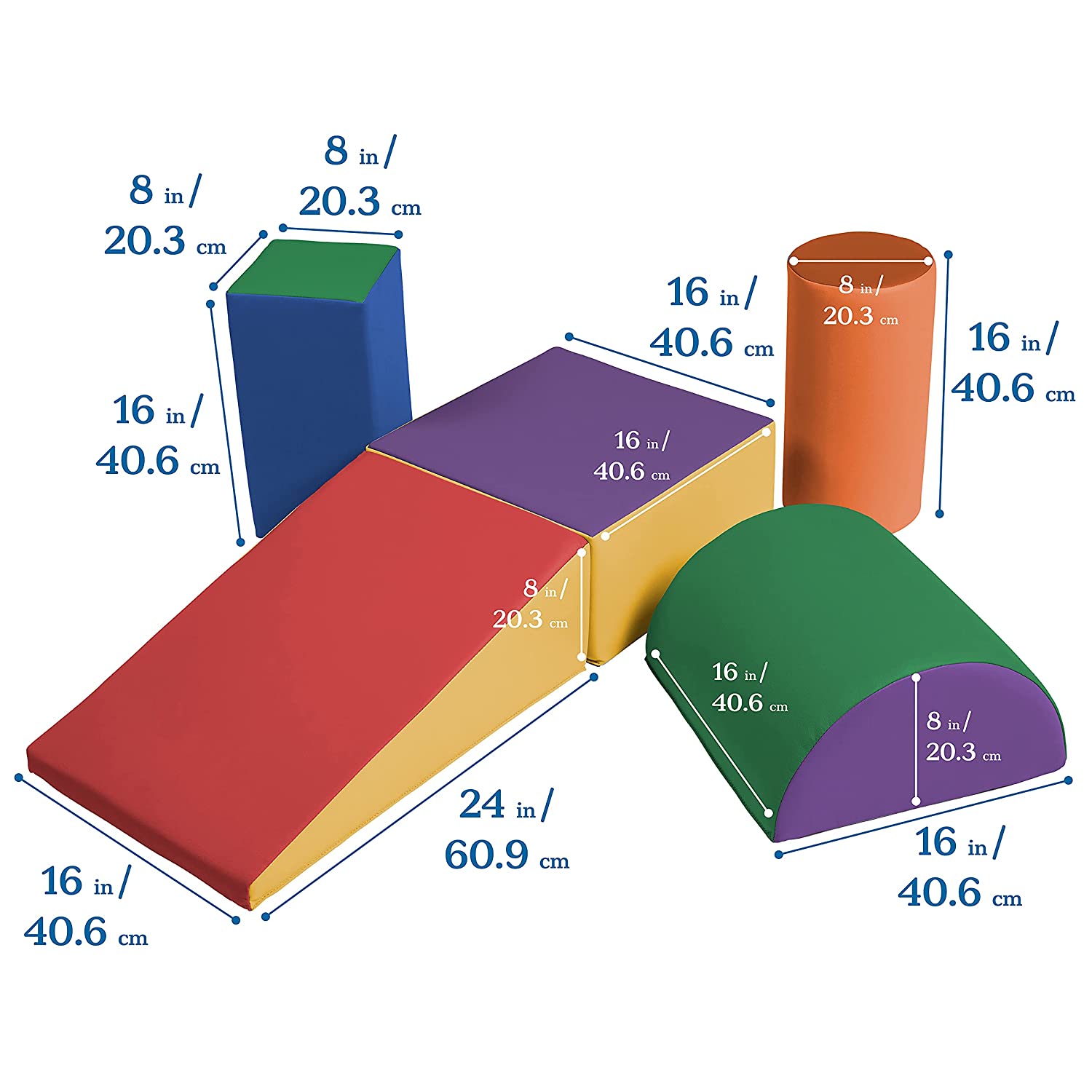 The SoftZone Climb and Crawl Play Set allows little ones to develop important gross motor skills as they move and play at home, at daycare, or in the classroom. This 5-piece set includes square, rectangle, wedge, round, and half-moon shape to allow for a variety of setup options and keep playtime open-ended and fresh. Covered in soft vegan leather, pieces are easy to clean by wiping down with a mild soap-and-water solution or your favorite bleach-free cleaning wipe. Rated GREENGUARD [GOLD] for low VOCs, CPSIA lead and phthalate compliant, meets ASTM F963 Toy Safety Standards and adheres to CA-117 requirements for fire retardancy. Constructed with certified flexible polyurethane foams that meet CertiPUR-US program standards. At ECR4Kids, we’re committed to safety, testing and regulatory compliance to ensure our products meet or exceed industry standards. You and your kids deserve the absolute best for a brighter way to play, share, learn and grow.