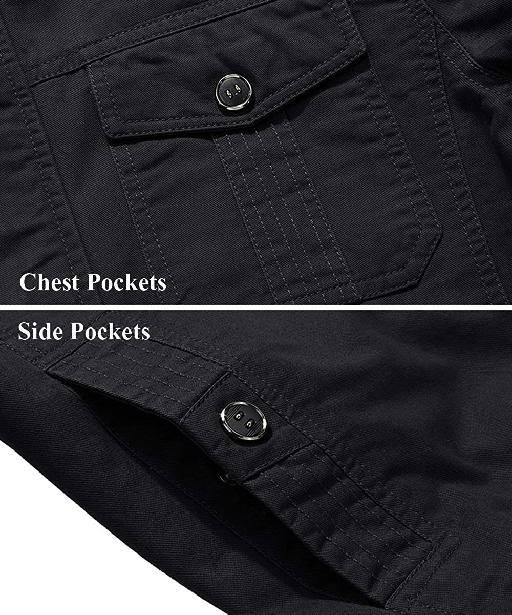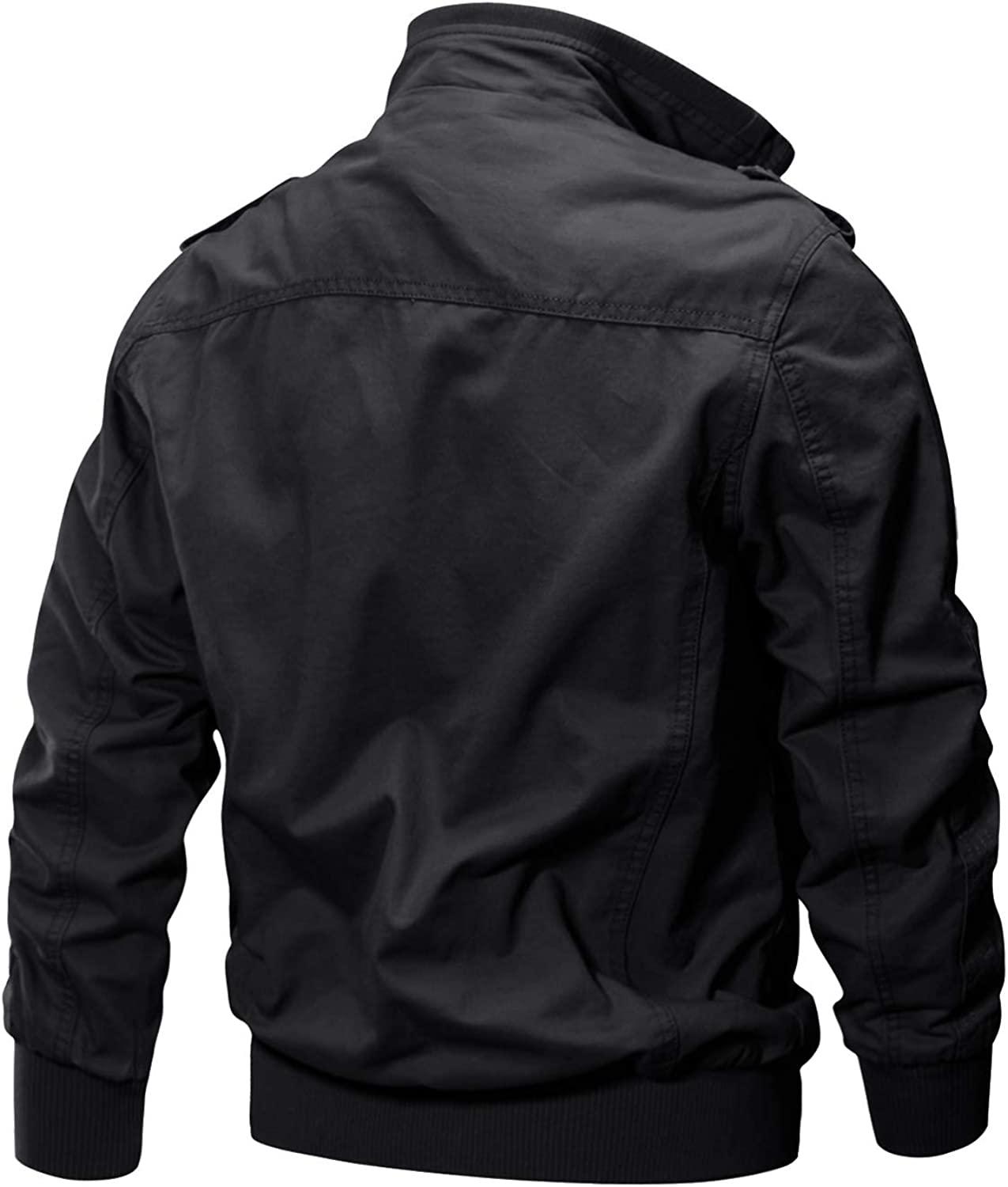 EKLENTSON Men's Cotton Lightweight Multi Pockets Zip Front Stand Collar Military Jackets Windbreaker