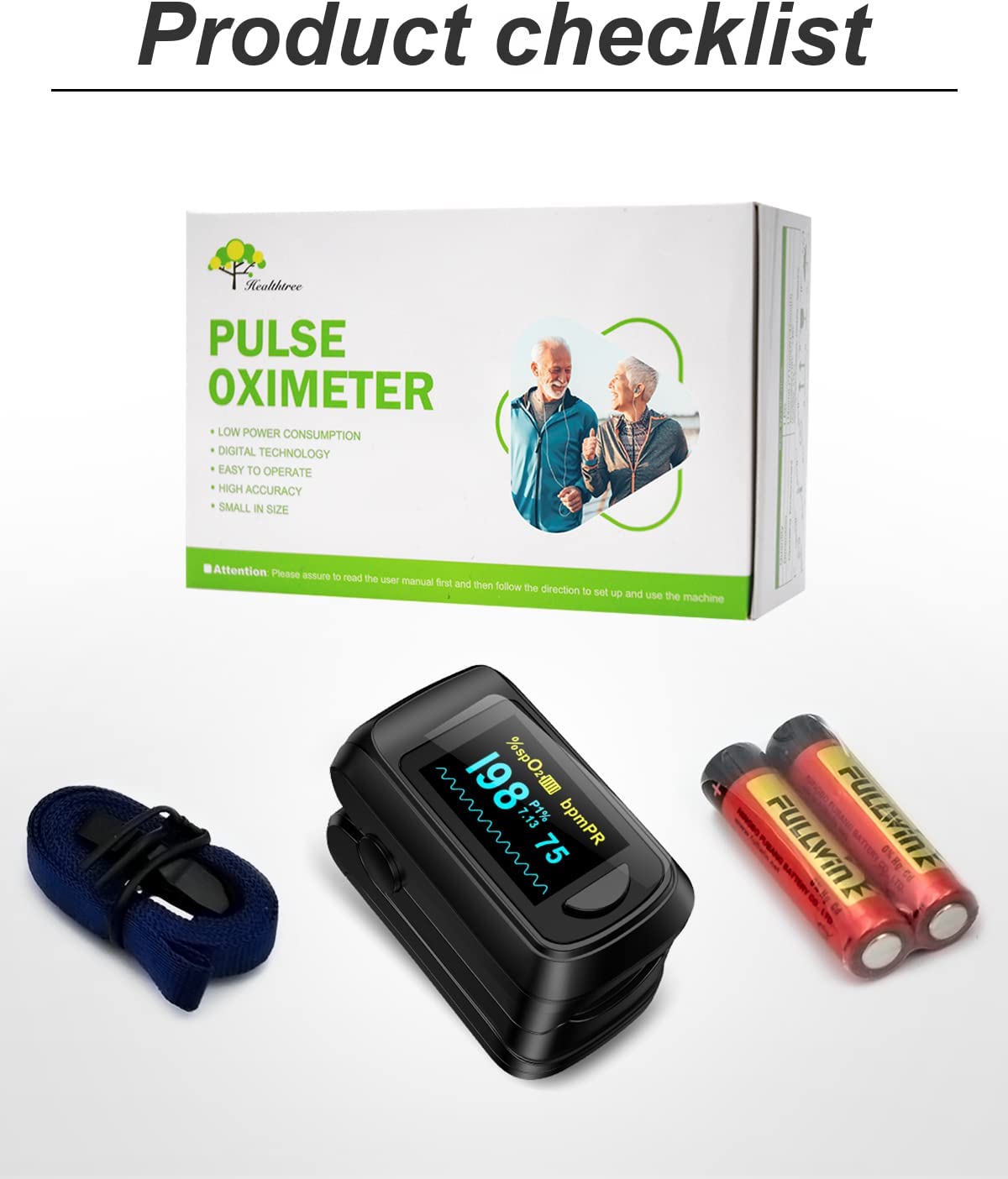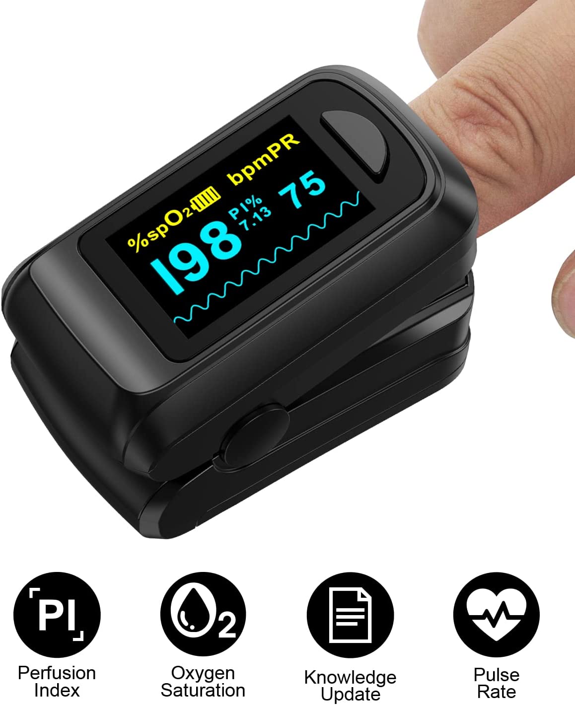 Fingertip Pulse Oximeter Blood Oxygen Saturation Monitor, Heart Rate and Fast Spo2 Reading Oxygen Meter with OLED Screen AAA Batteries
