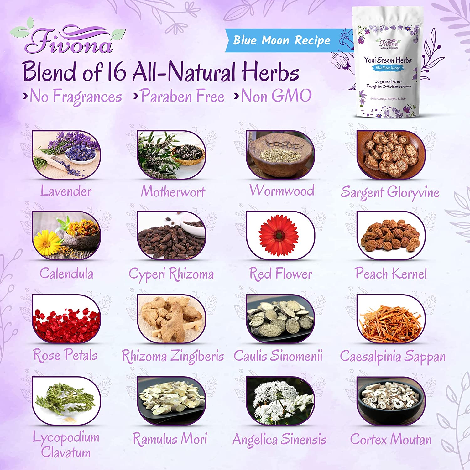 Fivona Yoni Steam Kit 4-in-1 Bundle of Expandable Steaming Seat for Toilet Pump Storage Bag and All Natural Blue Moon Herbal Blend for V-Steam Therapy Cleansing Detox Tightening Fertility Increase