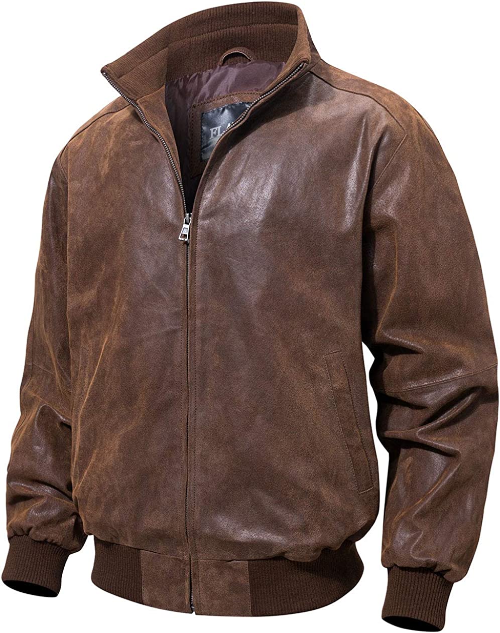 FLAVOR Men's Real Leather Bomber Casual Jacket