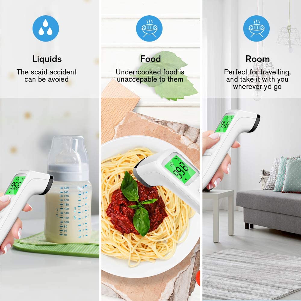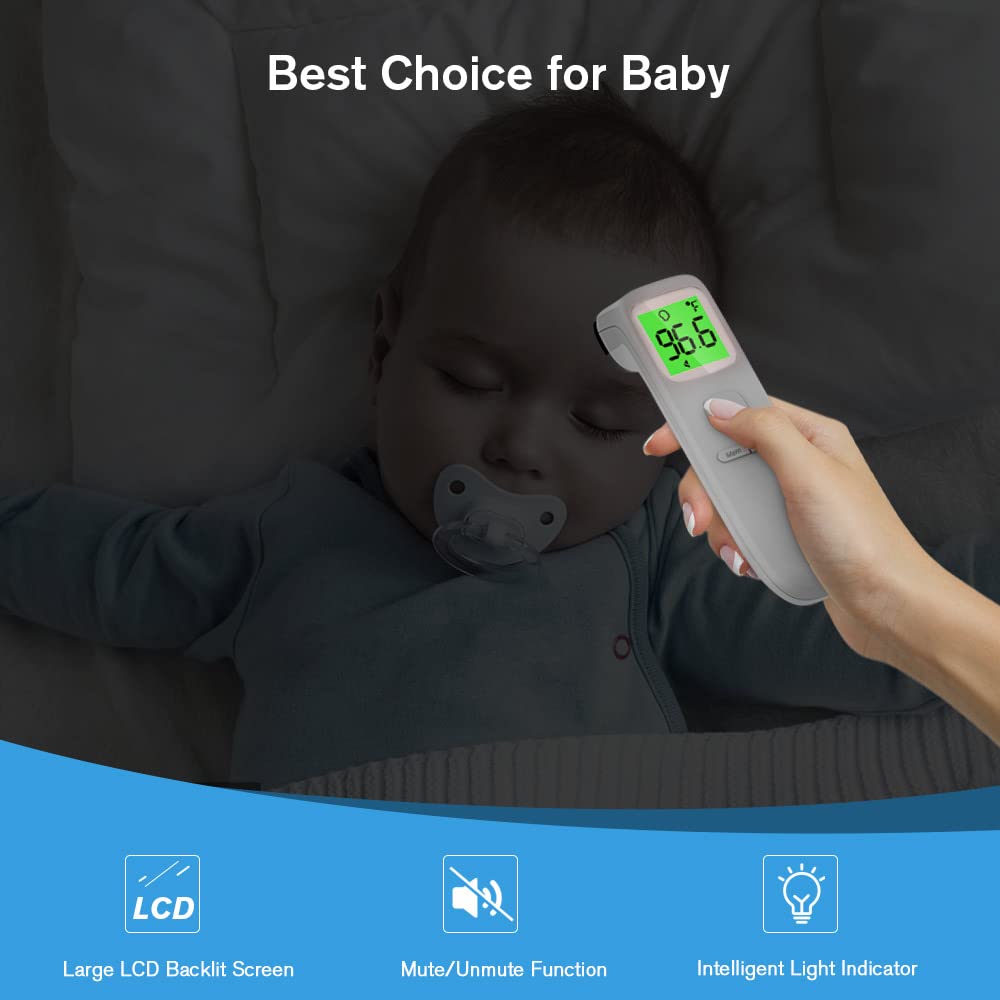Forehead Thermometer, Baby and Adults Thermometer with Fever Alarm, LCD Display and Memory Function, Ideal for Whole Family (White)