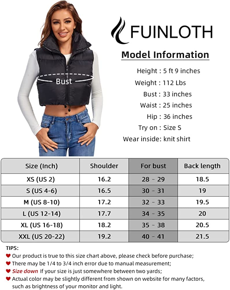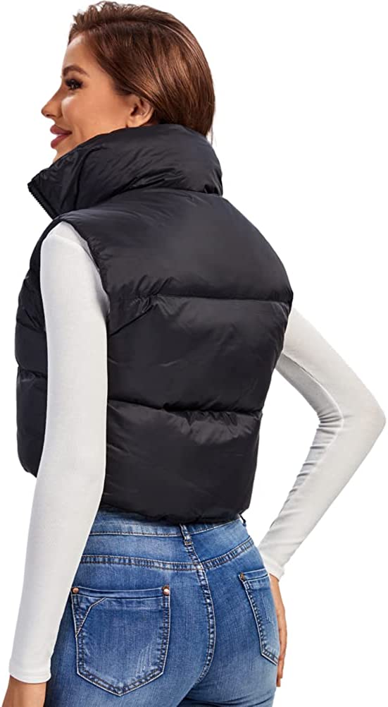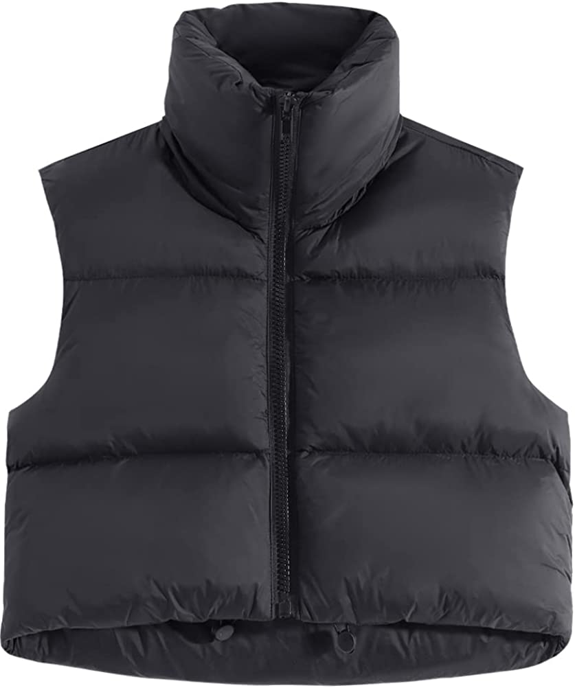 Fuinloth Women's Padded Vest, High Stand Collar Lightweight Zip Crop Puffer Gilet