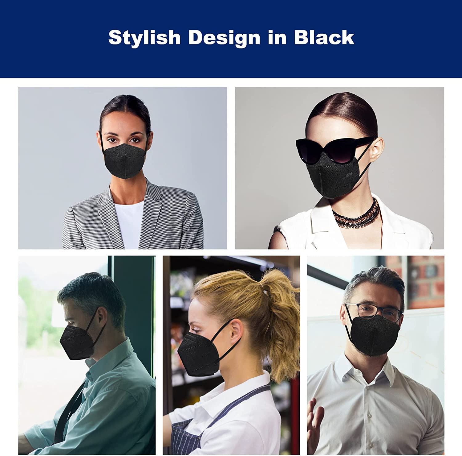 Funight KN95 Face Masks 25 Pack 5-Ply Breathable Filter Disposable Face Masks Black