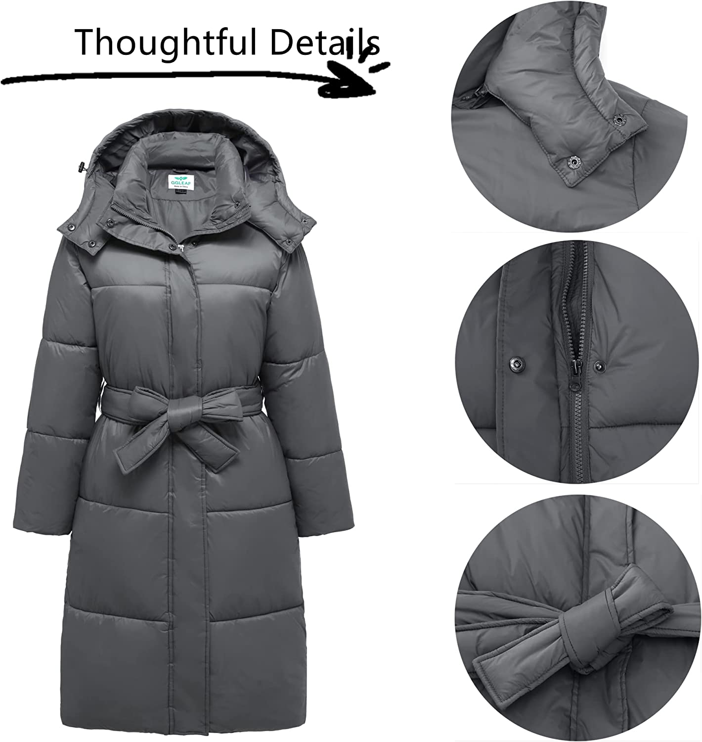 GGleaf Women's Thickened Down Alternative Jacket Hooded Puffer Long Coat Warm Packable & Lightweight