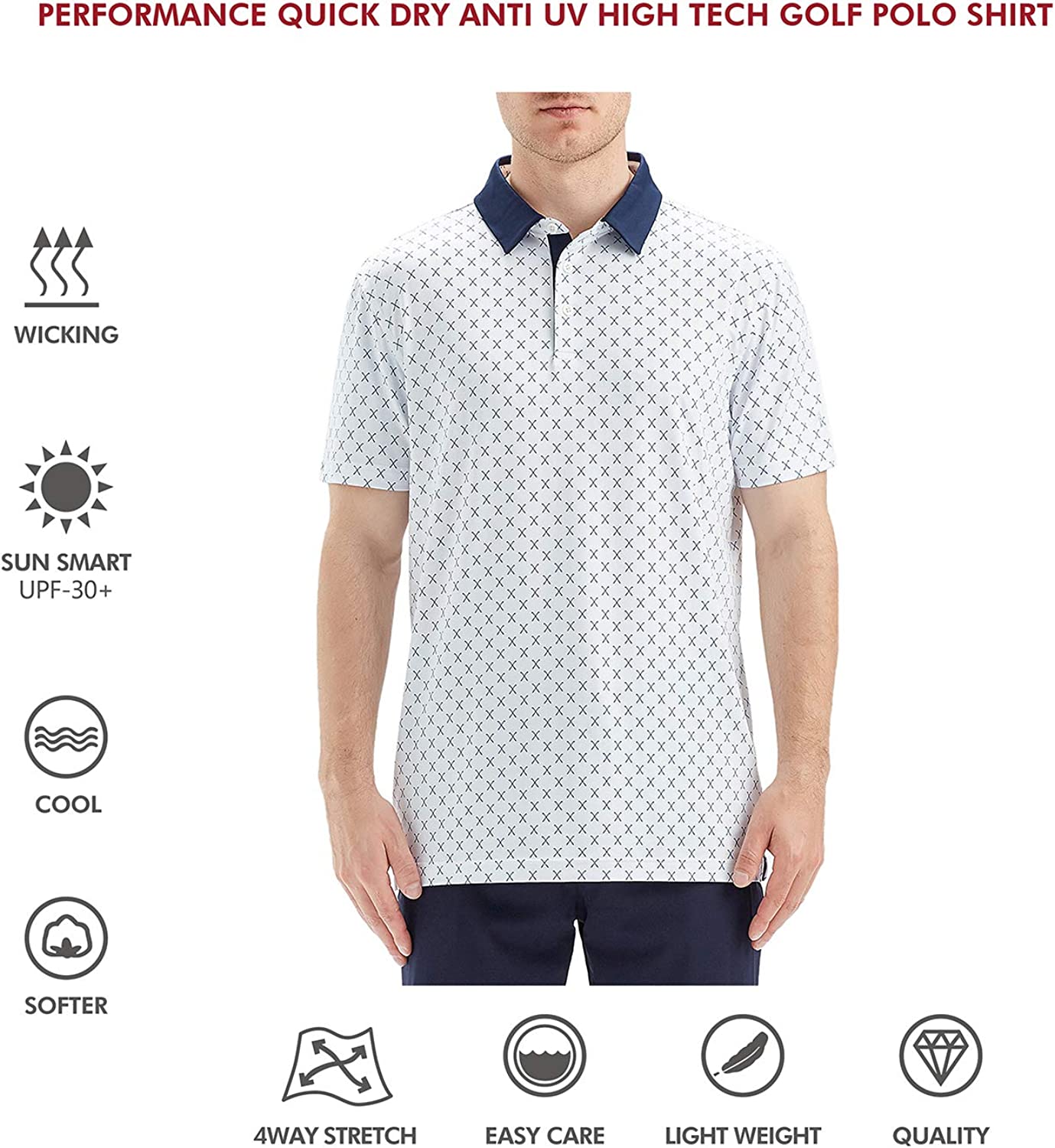 Golf Shirts for Men Dry Fit Short Sleeve Print Performance Moisture Wicking Polo Shirt