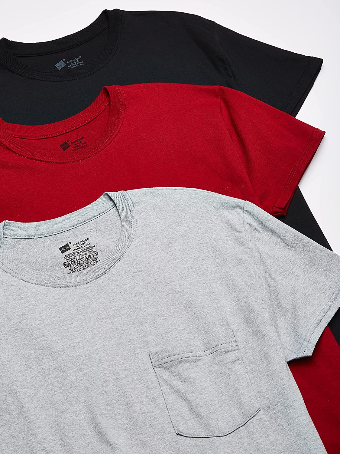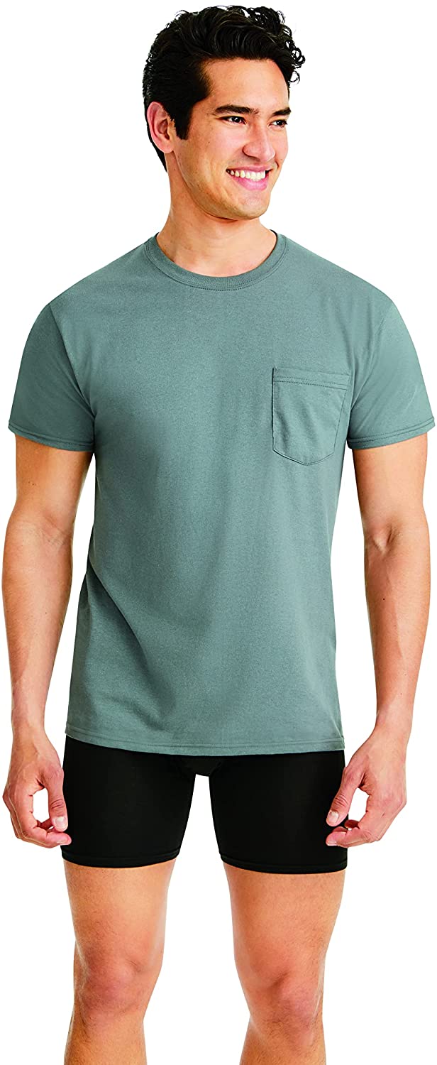 Hanes Men’s Pocket Undershirt Pack, Cotton Crew Neck T-Shirt, Moisture Wicking Tee, Assorted 6-Pack
