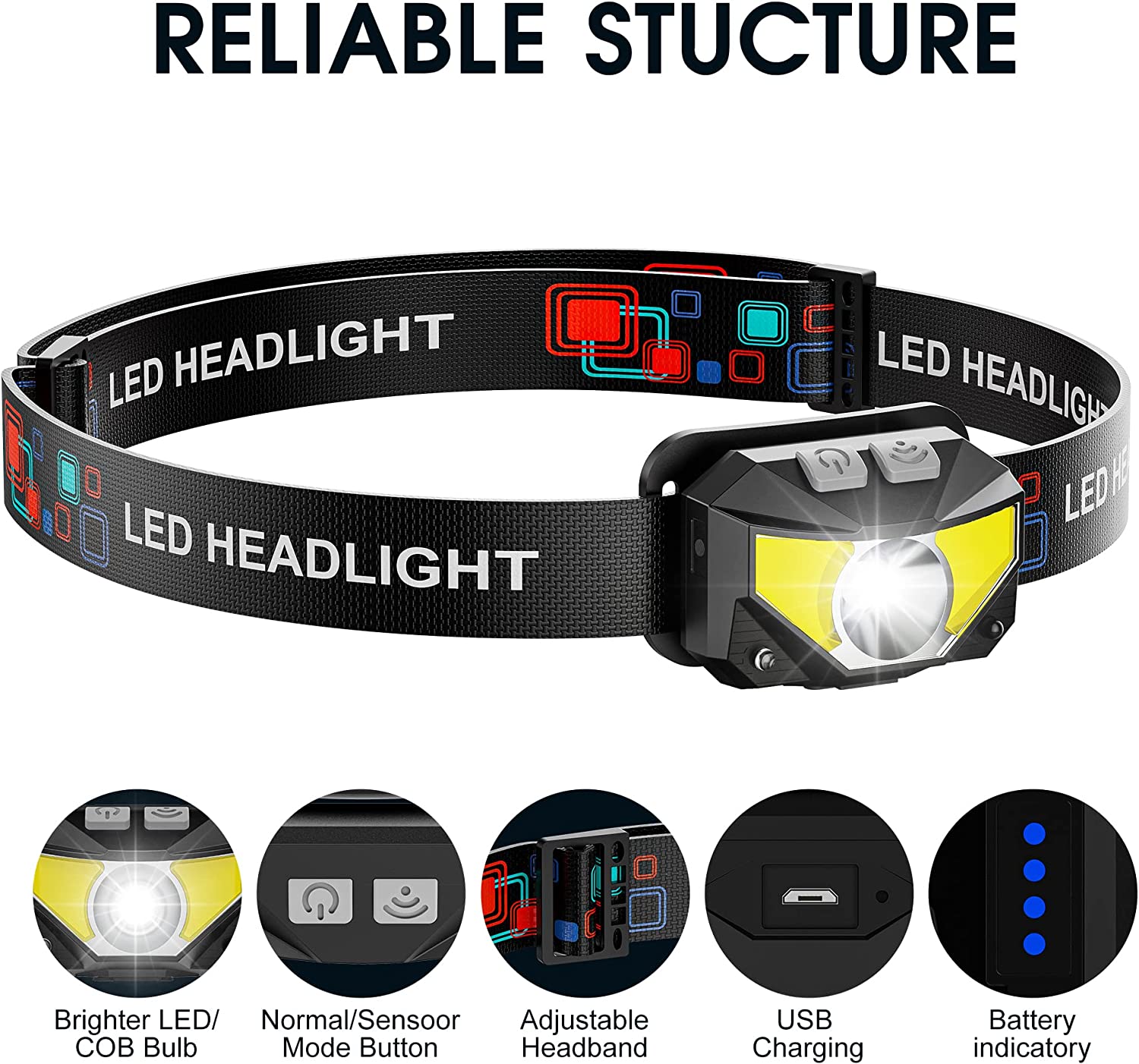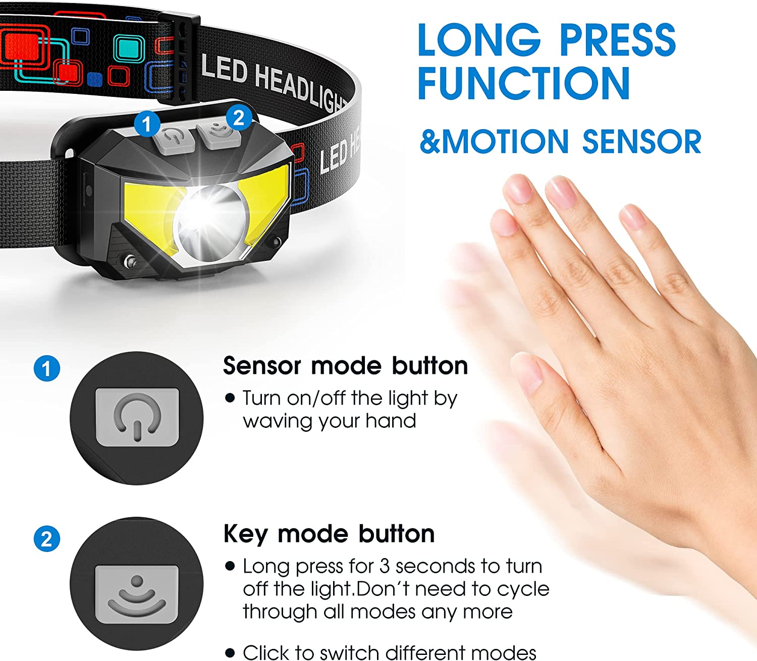 Headlamp Rechargeable, 2-Pack Head Lamp Outdoor LED Rechargeable, 1100 Lumen Super Bright White Red Light Flashlights, Waterproof, Motion Sensor, 8 Modes, Outdoor Fishing and Camping Headlight