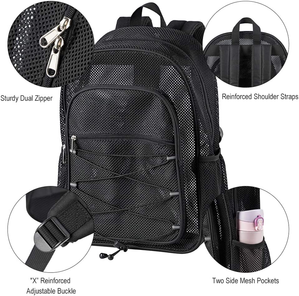 Heavy Duty Mesh Backpack, See Through College Student Backpack, Semi-transparent Mesh Bookbag with Bungee and Comfort Padded Straps for Commuting, Swimming, Beach, Outdoor Sports