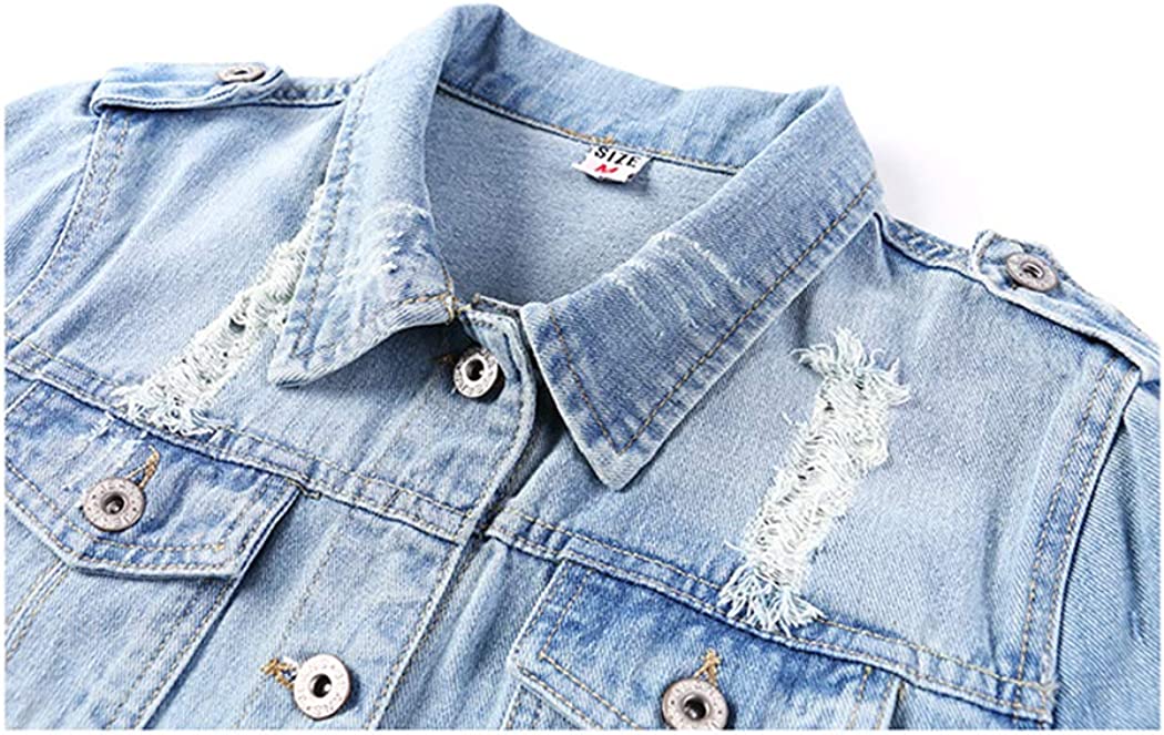 Hixiaohe Women Autumn 3/4 Sleeve Retro Short Denim Jackets Light Blue Jean Coats